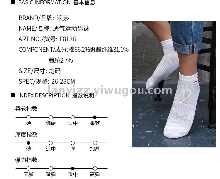 浪莎男袜子薄款运动袜 男士袜子夏季低帮短袜袜子男隐形船袜