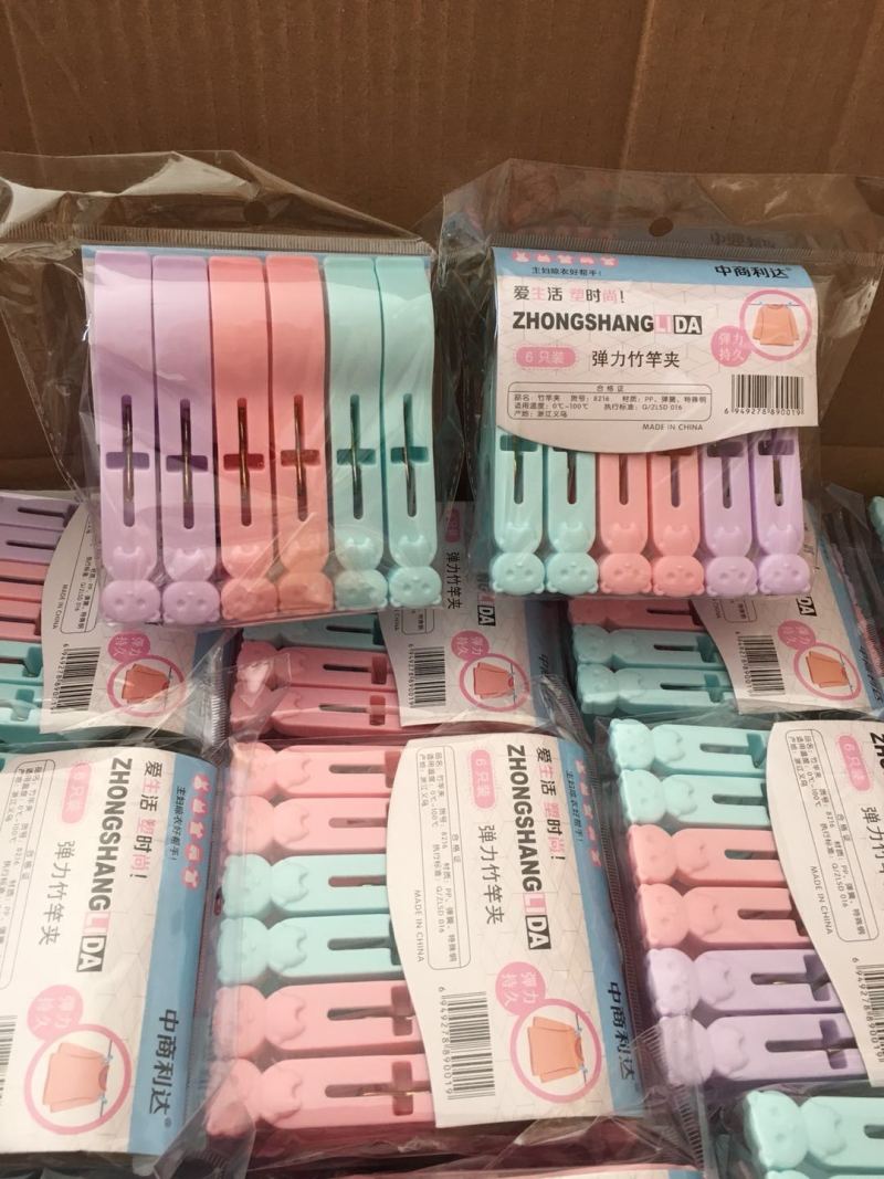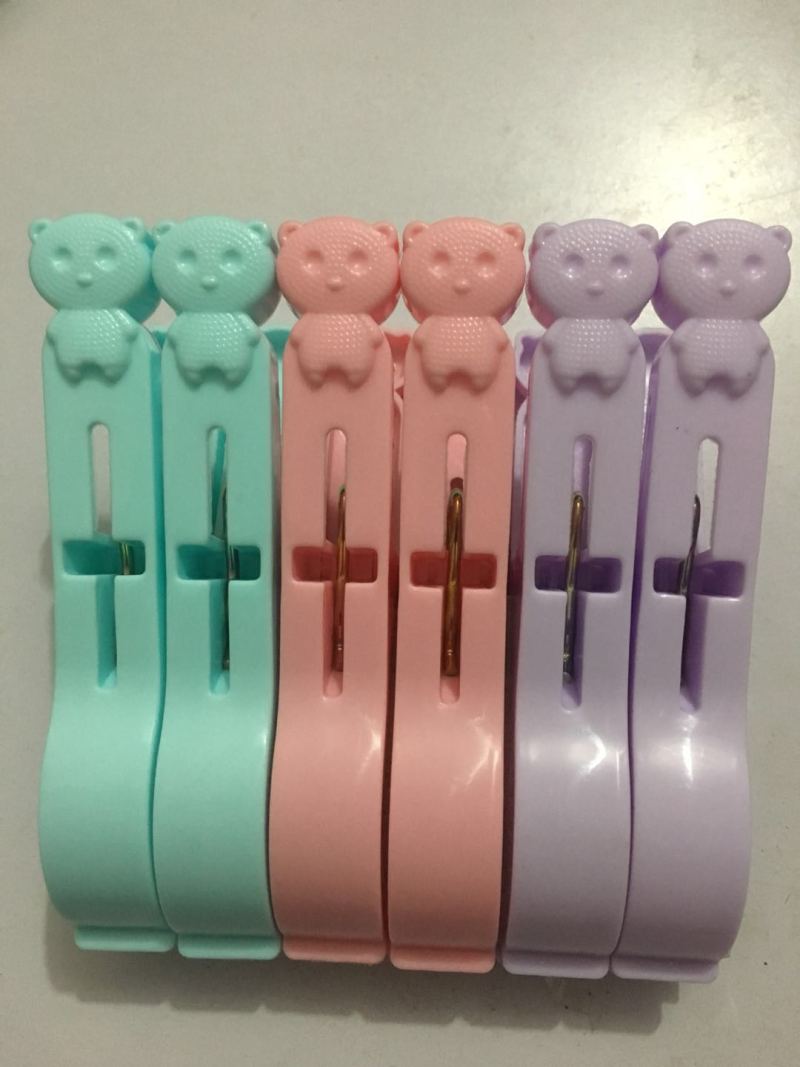 宝正8216胶夹小熊一套6个装塑料晾衣夹防风夹子强力多用直销批发