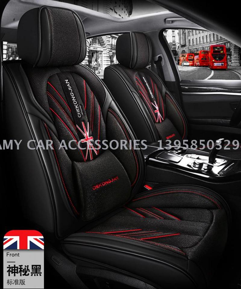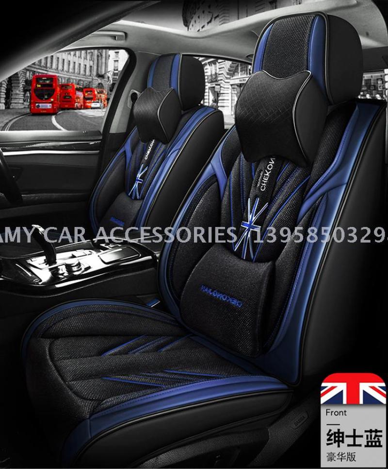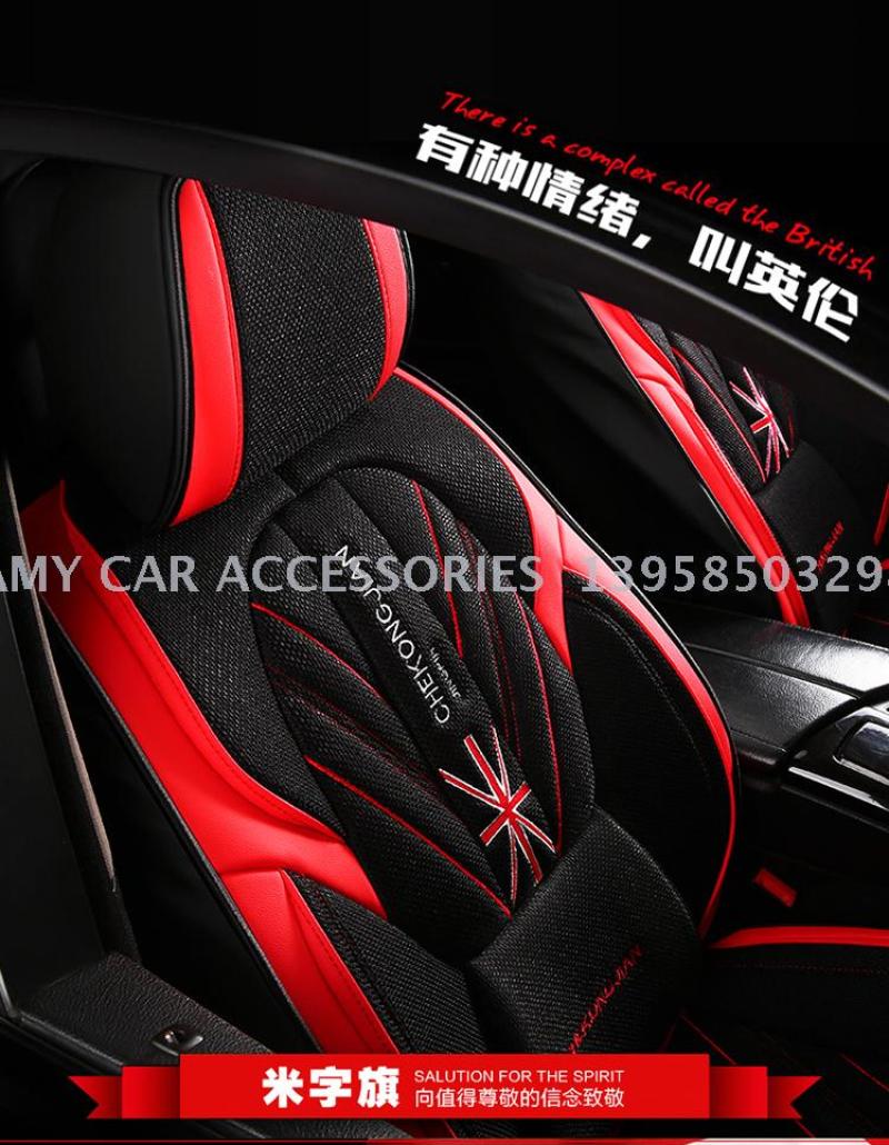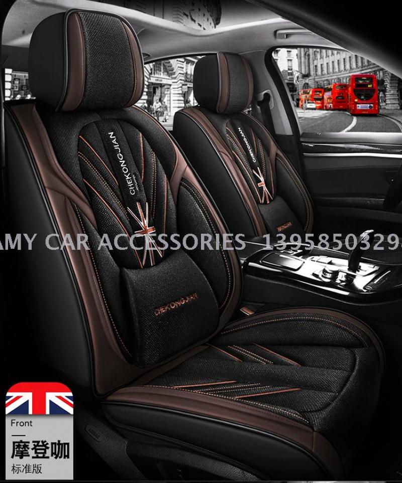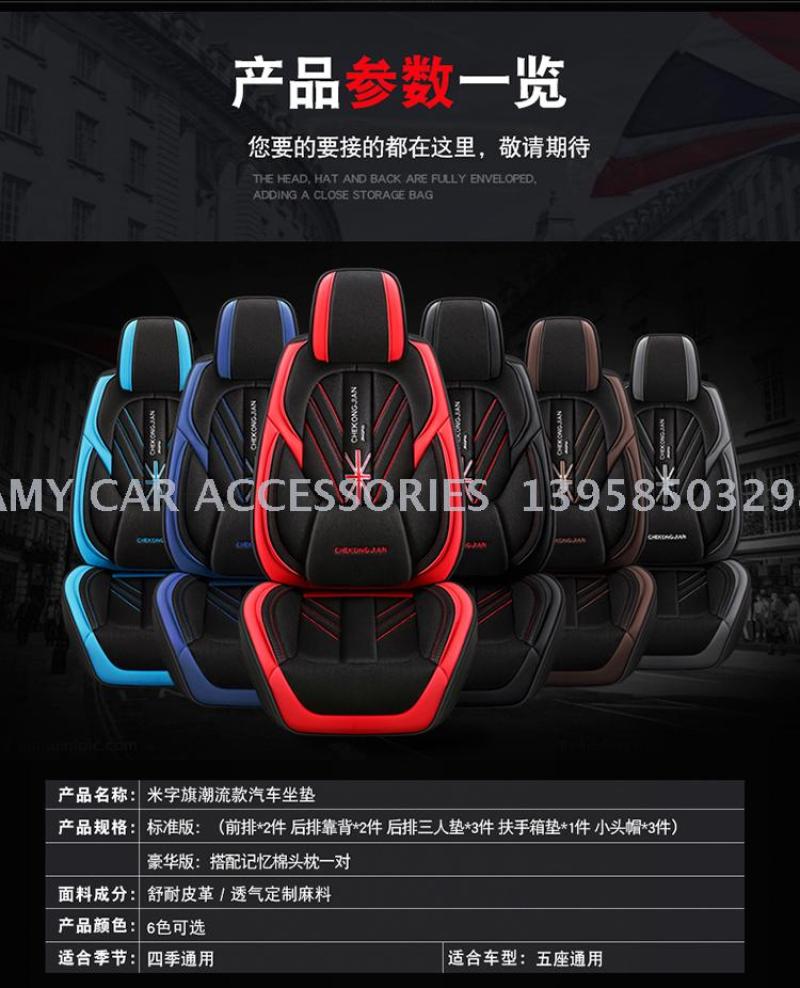 2020年新款米字旗皮拼麻料四季通用汽车坐垫汽车用品