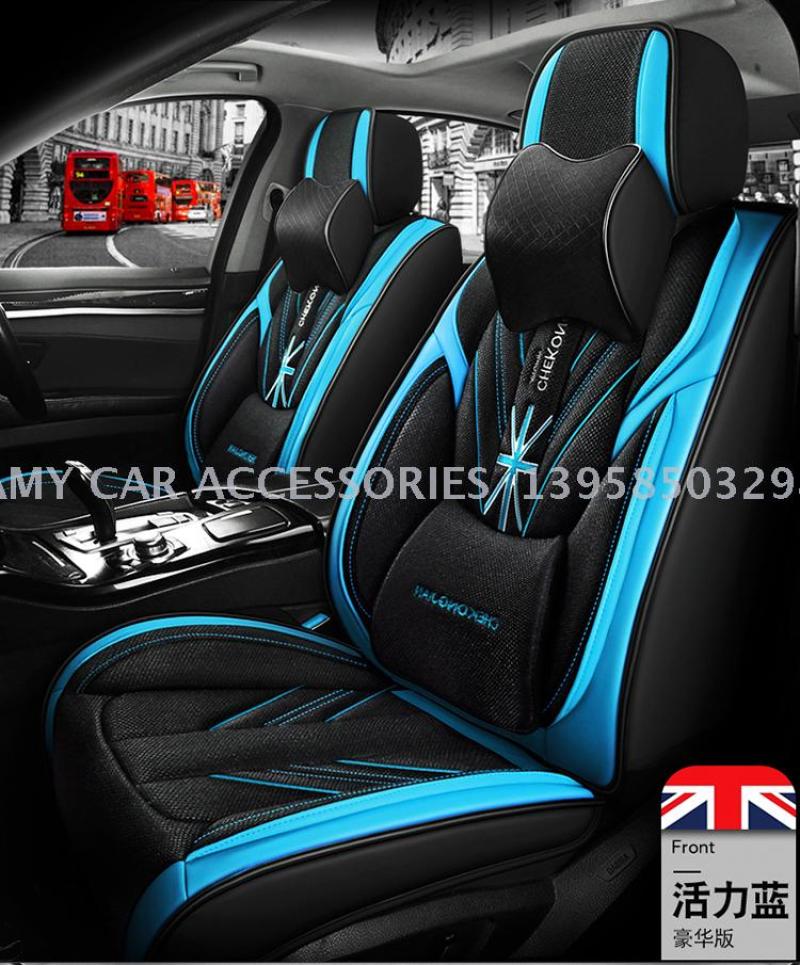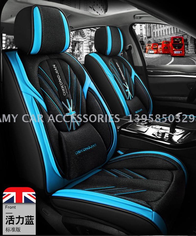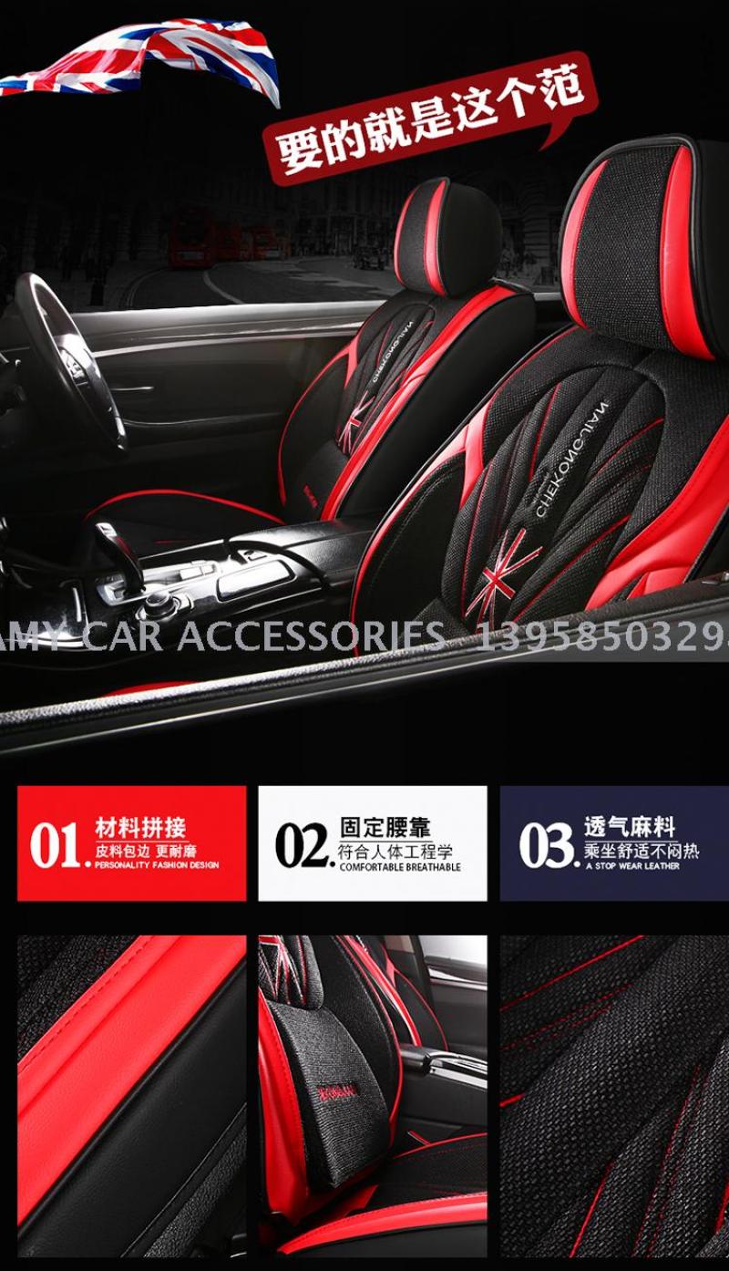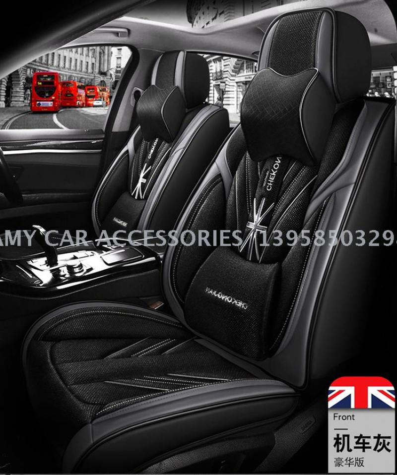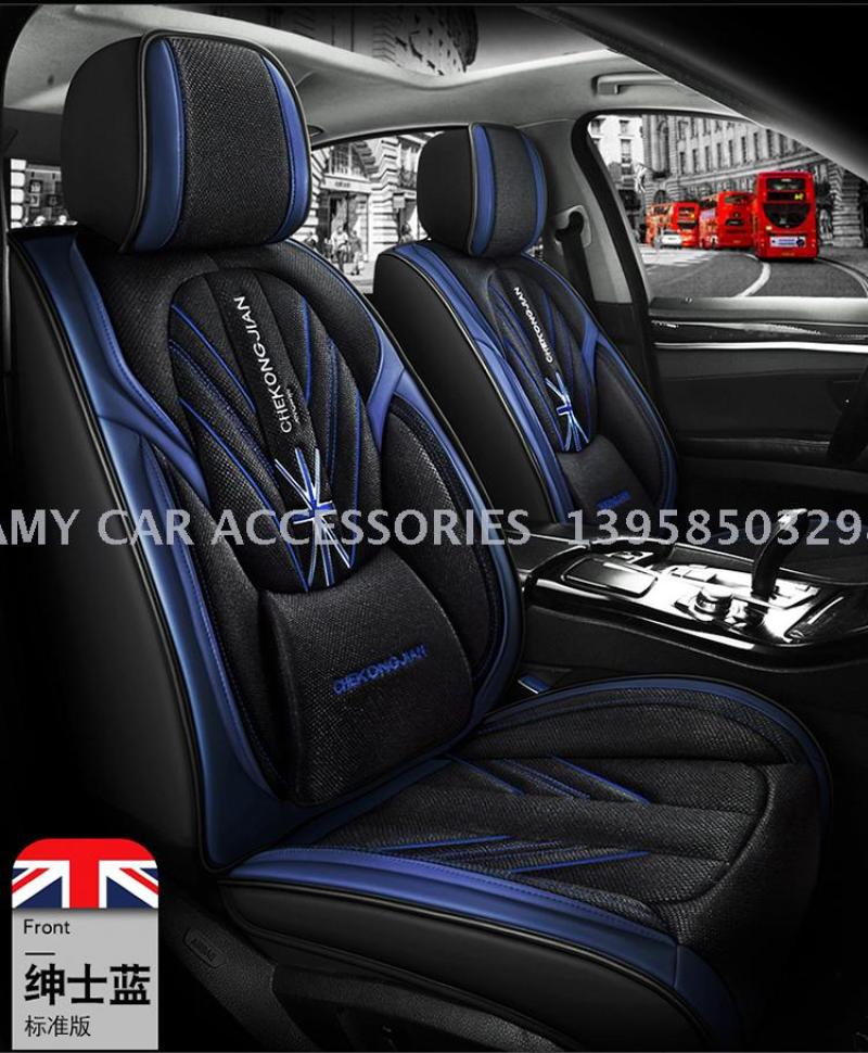 2020年新款米字旗皮拼麻料四季通用汽车坐垫汽车用品