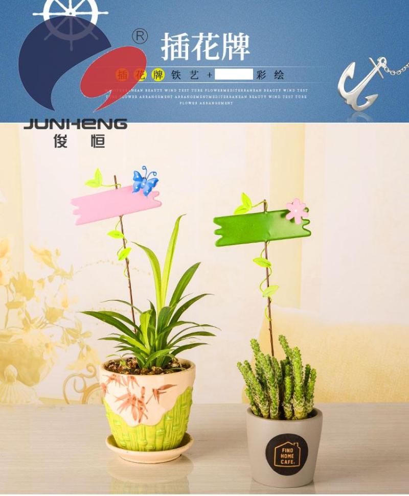 俊恒工艺可写字标志牌铁艺花插创意田园风金属制品工艺品花园装饰