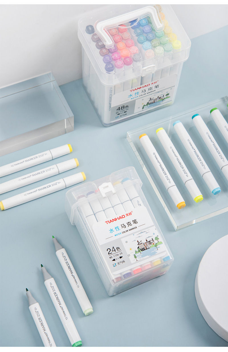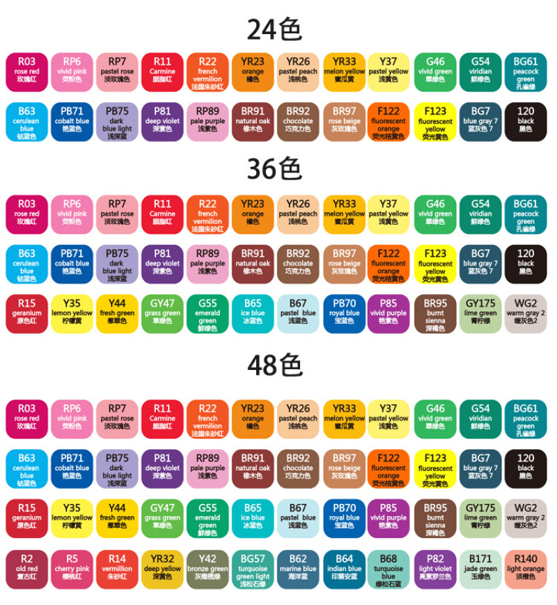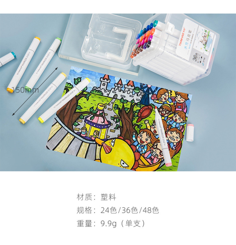 备注: 此款马克笔一箱起批! 颜色不同装箱数不同! 36桶/24色/箱 24桶/36色/箱 18桶/48色/箱