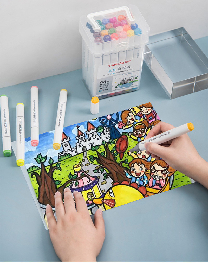 天好马克笔套装 专业手绘套装 荧光笔/记号笔/白杆桶装马克笔