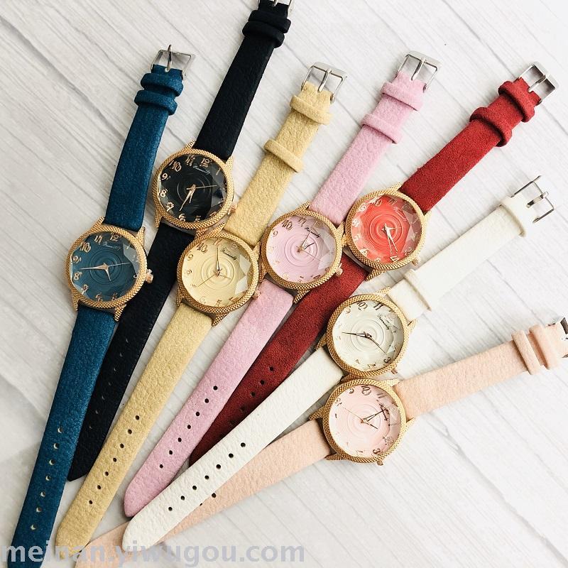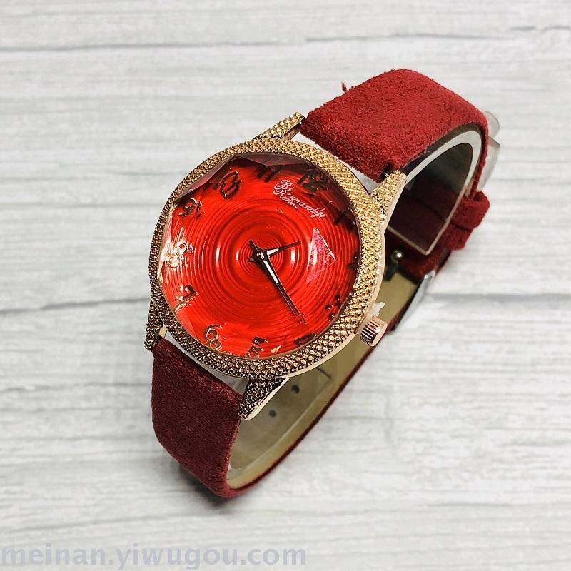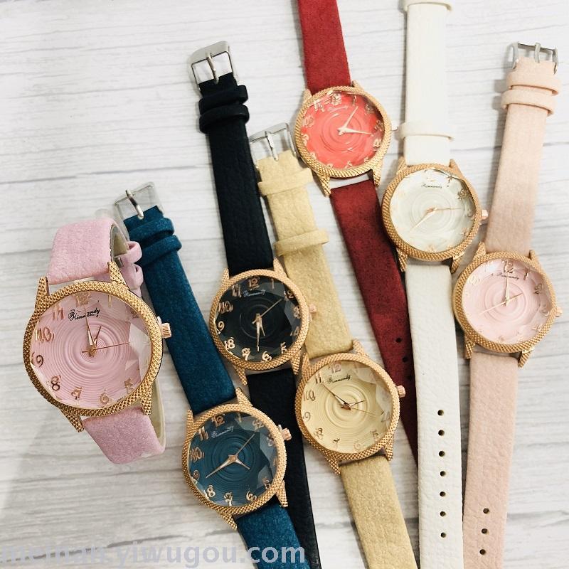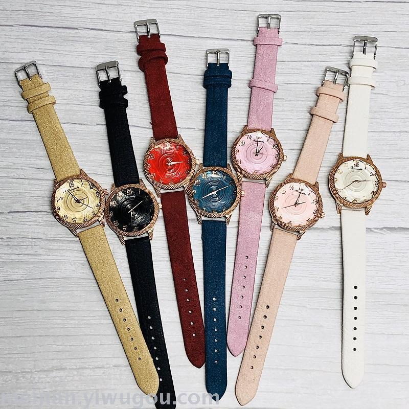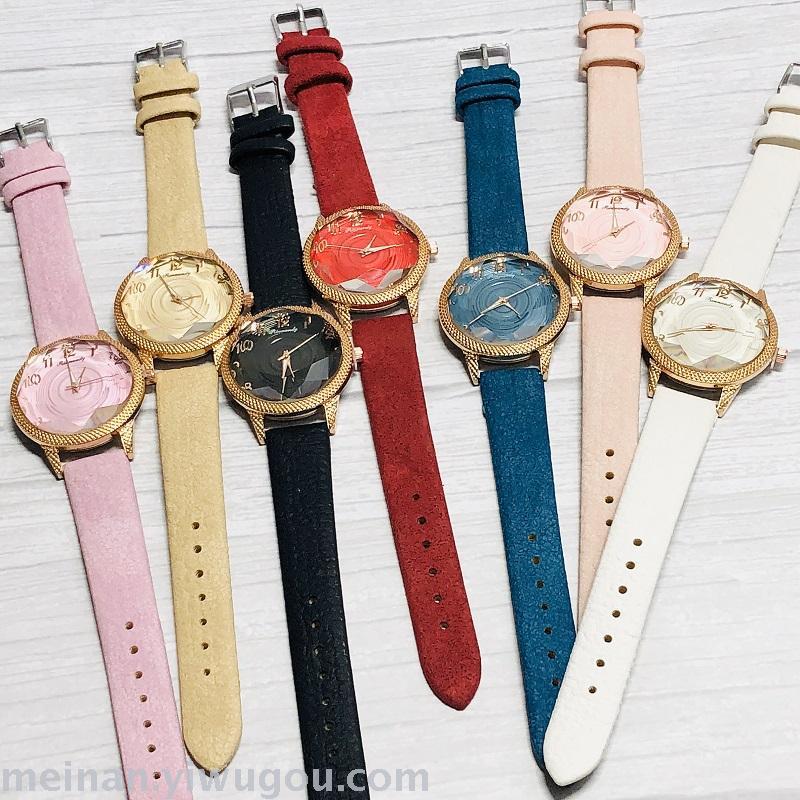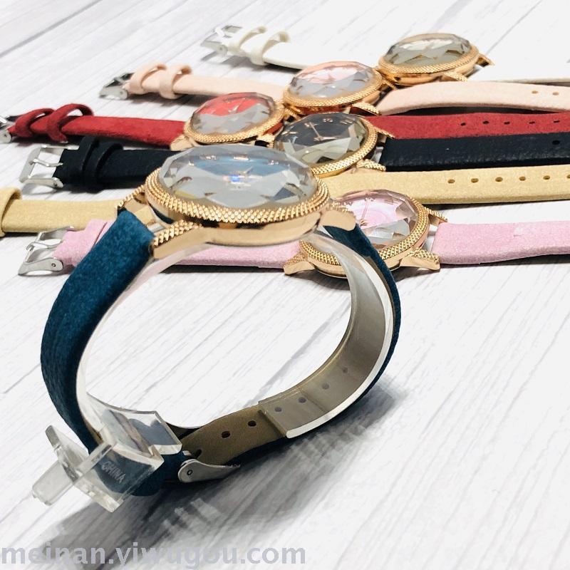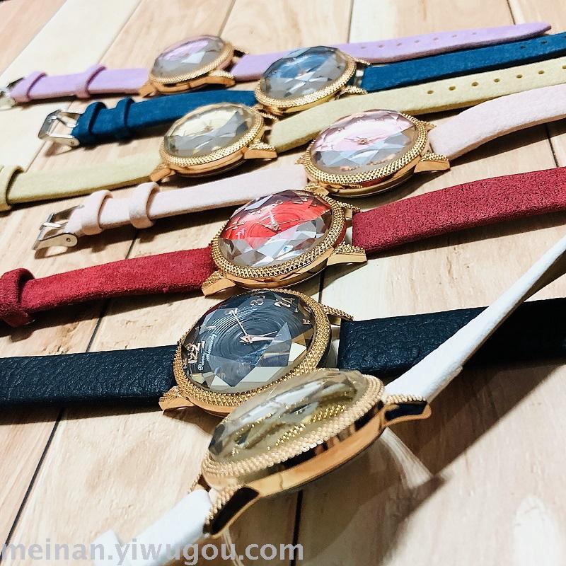 新款创意水晶玻璃面梦幻3D螺旋皮带女士手表