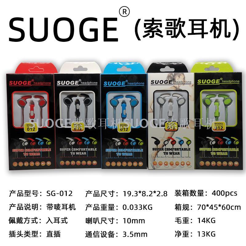 SUOGE索歌品牌SG-012手机耳机,入耳式耳麦,MP3耳塞时尚创意精品