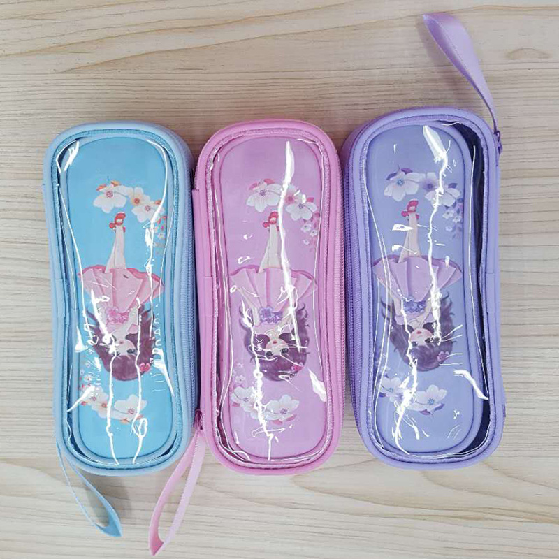 厂家直销笔袋双层可拆手提笔袋可爱女孩笔袋