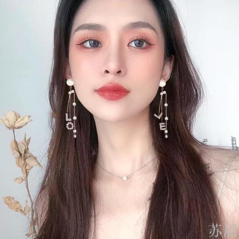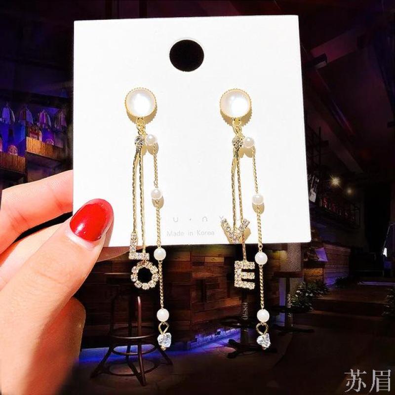 潮流苏字母耳环女气质网红长款耳钉韩国百搭个性love耳线