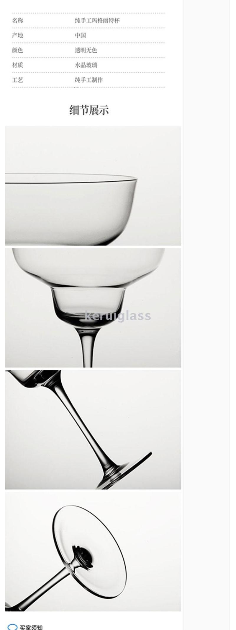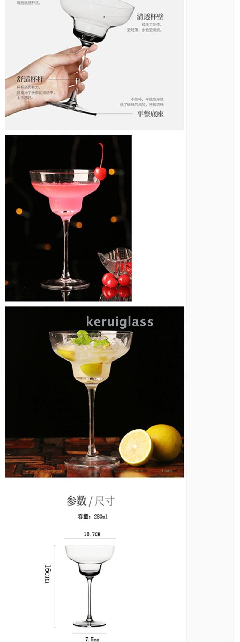 纯手工制作玛格丽特杯 无铅水晶玻璃鸡尾酒杯 飞碟杯高脚杯330ml
