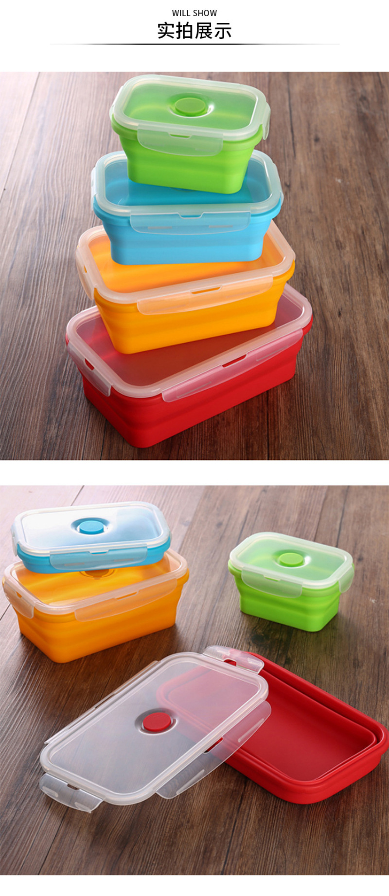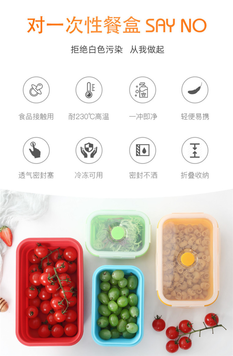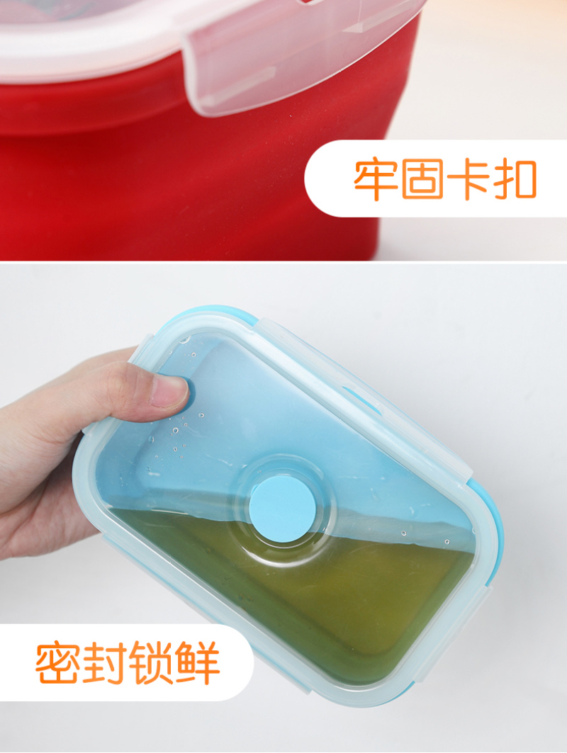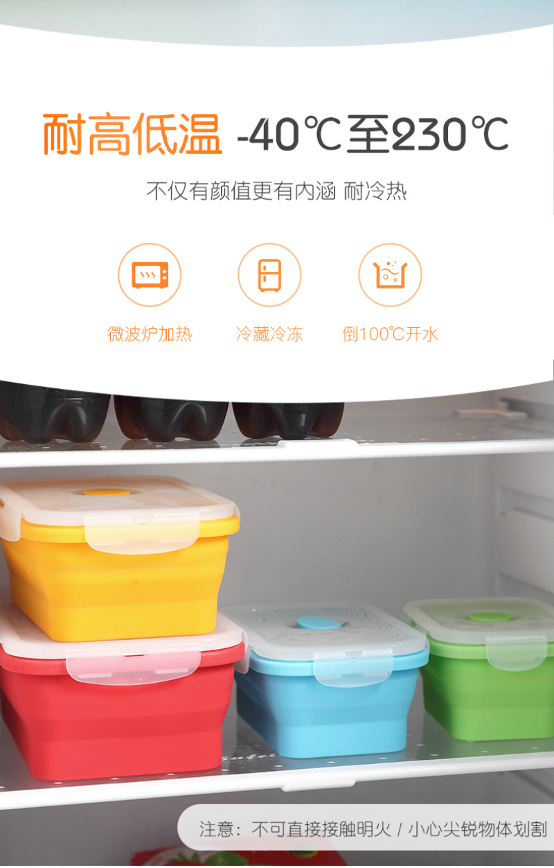 折叠 餐盒 硅胶饭盒伸缩收纳食物储存盒 午餐盒便当盒保鲜盒