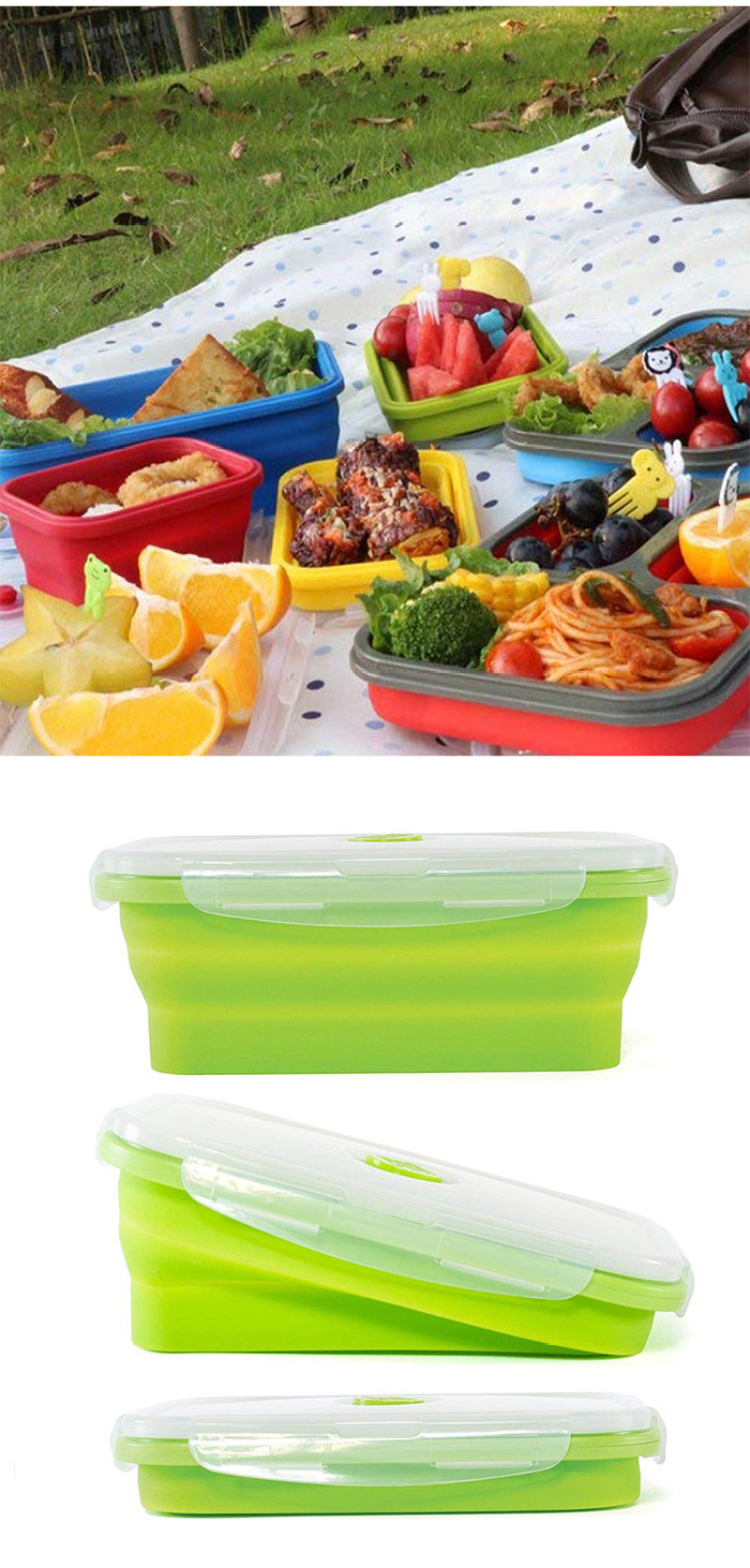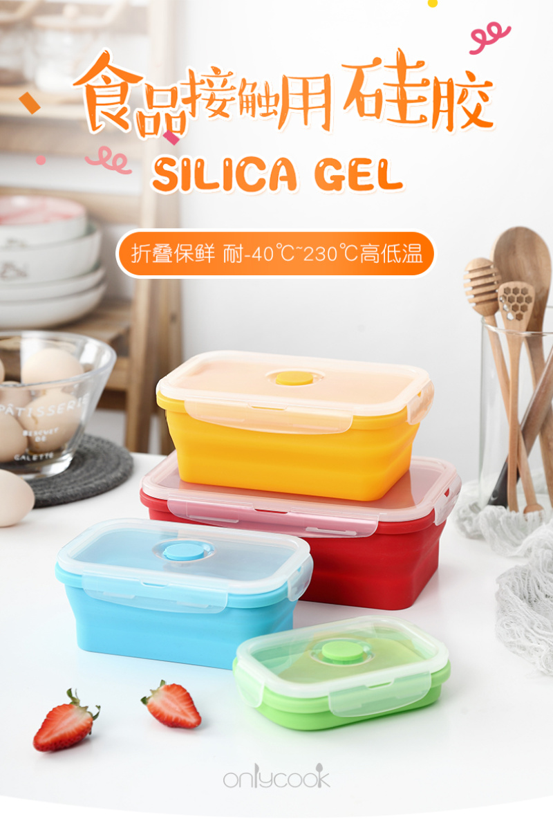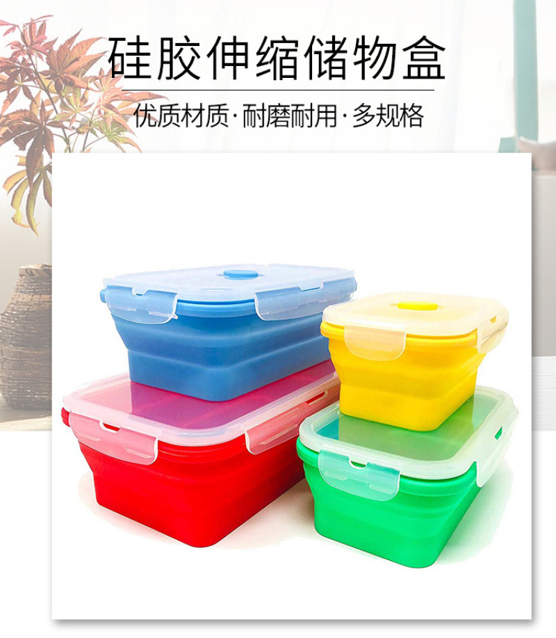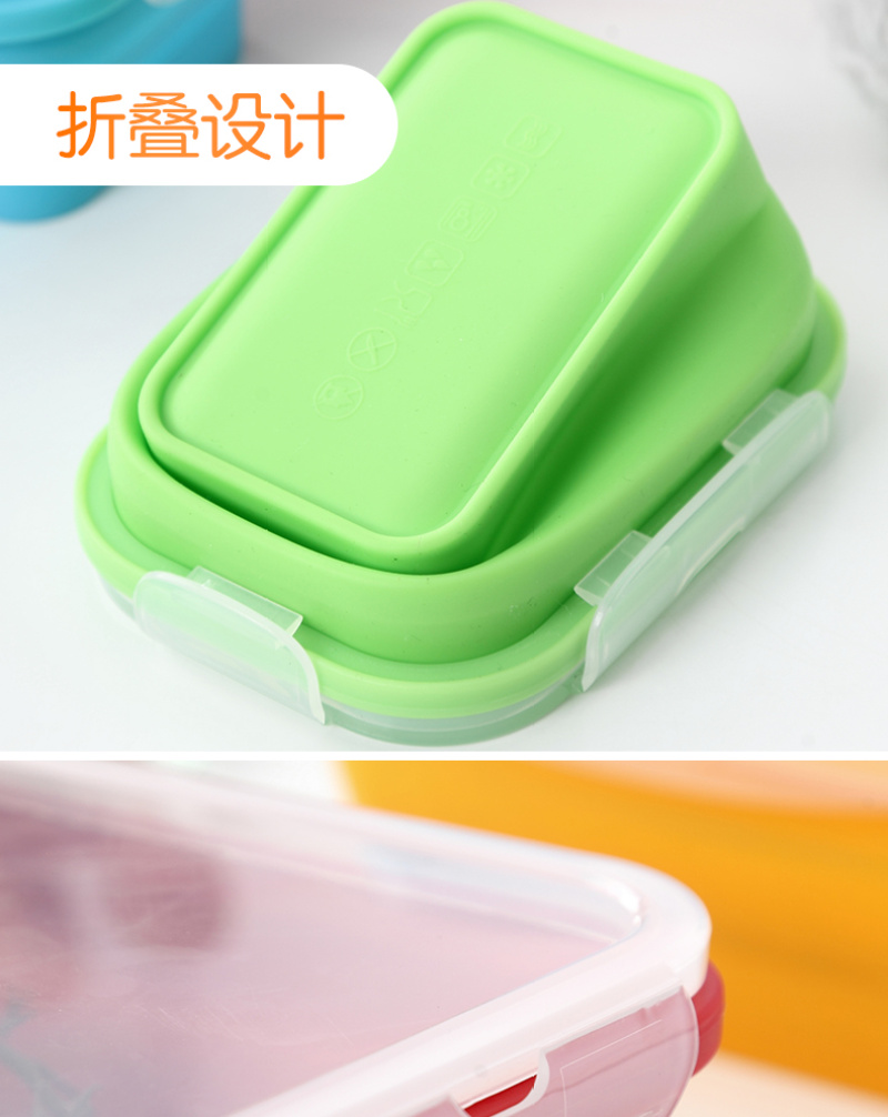 折叠 餐盒 硅胶饭盒伸缩收纳食物储存盒 午餐盒便当盒保鲜盒