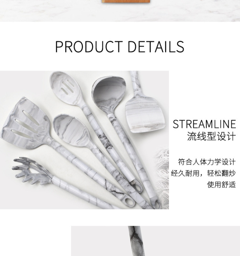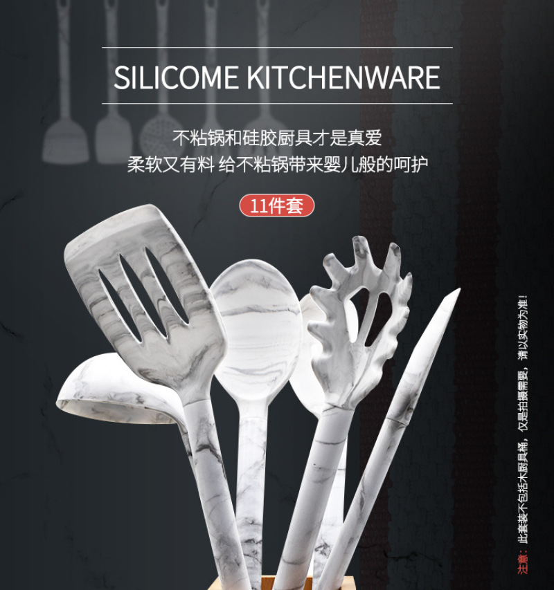厨具 分体 大理石纹硅胶 环保不粘锅烹饪铲勺铲 组合