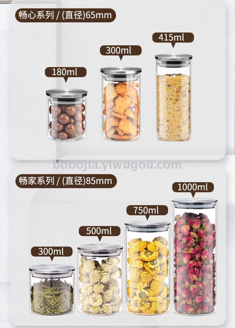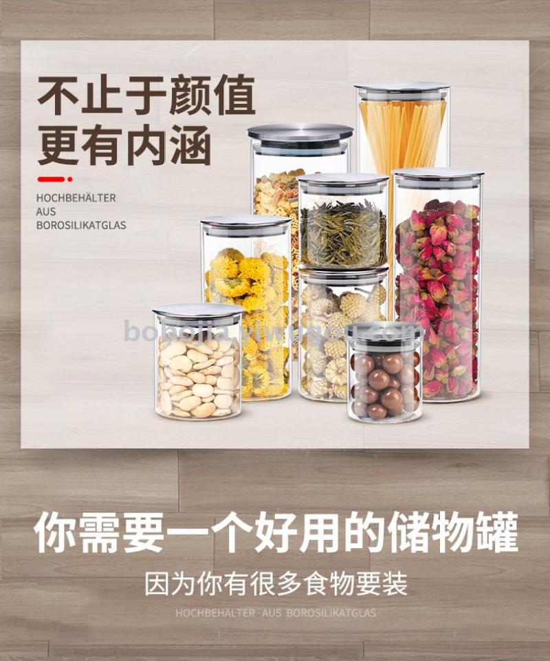 玻璃瓶密封罐带盖 高硼硅玻璃 可加热可冷藏 304不锈钢盖