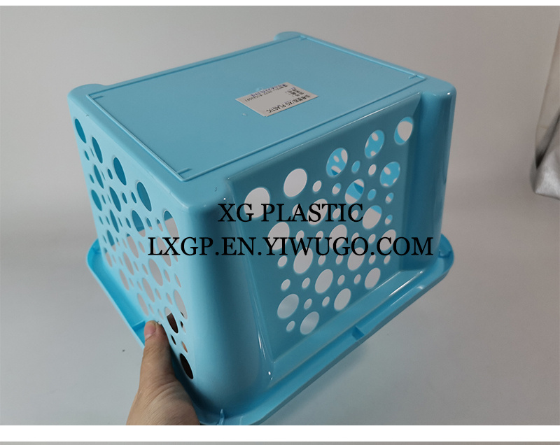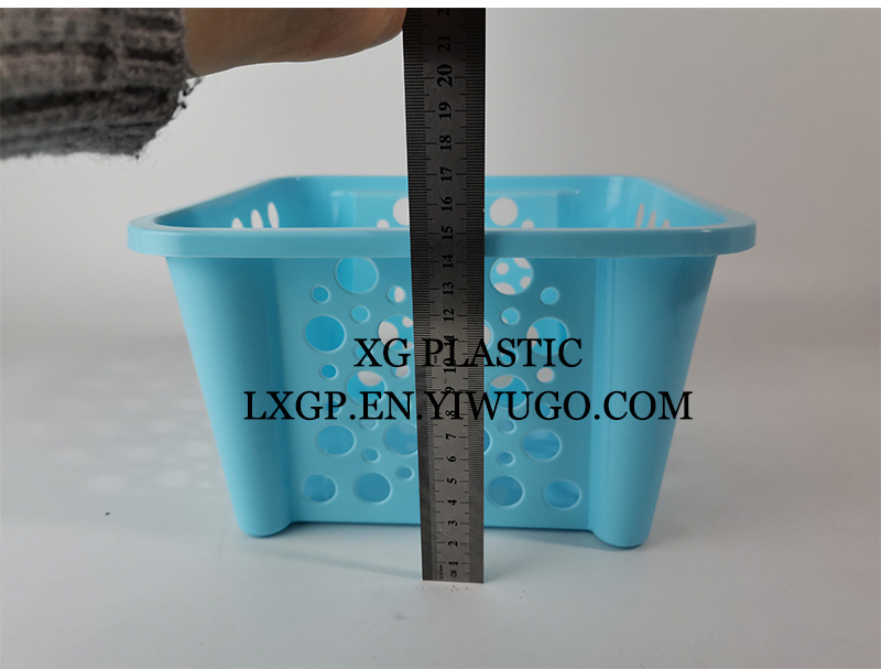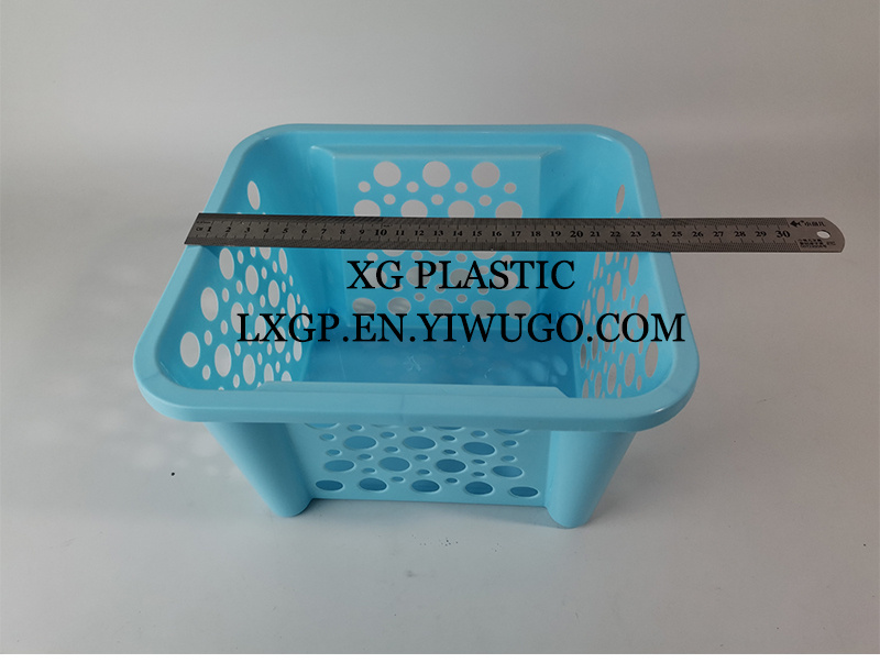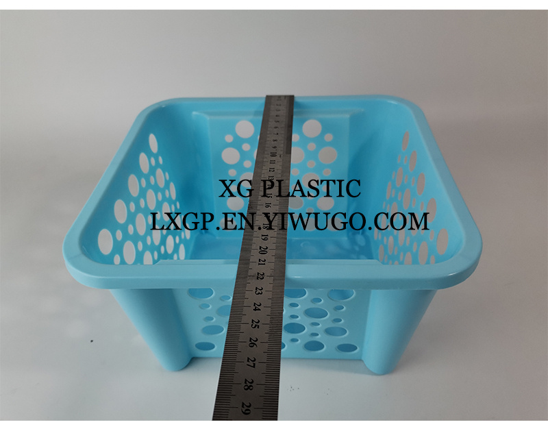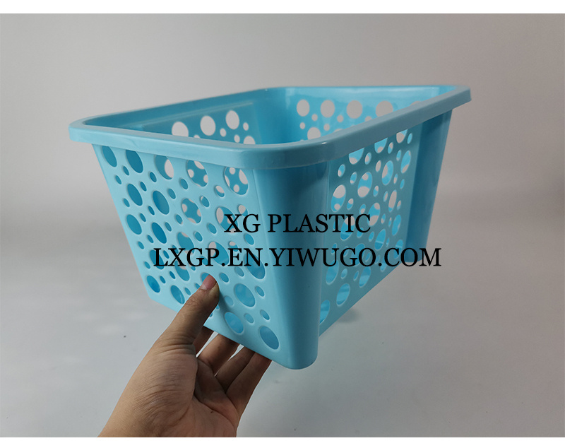 创意长方桌面收纳篮圆点镂空设计塑料篮家用办公室杂物篮置物篮