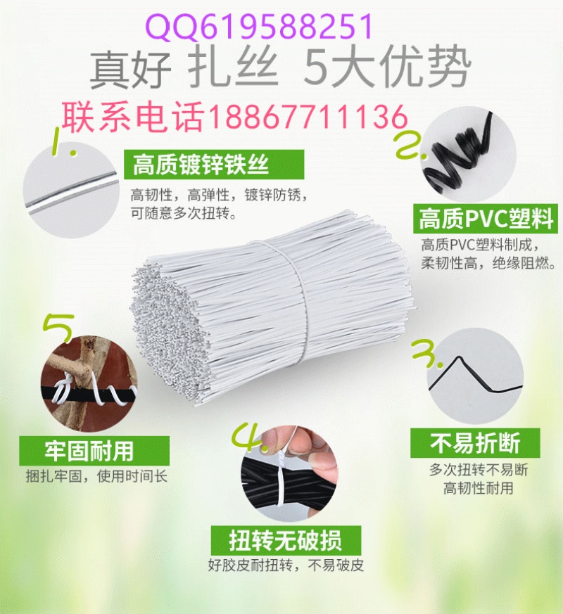 扎丝扎带塑料面包袋封口葡萄绑枝电镀锌绑丝扁铁丝包塑软札丝包邮