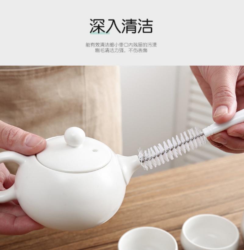 可弯曲金属,深入清洁死角污垢。能有效清洁细小壶口内残留的污渍。