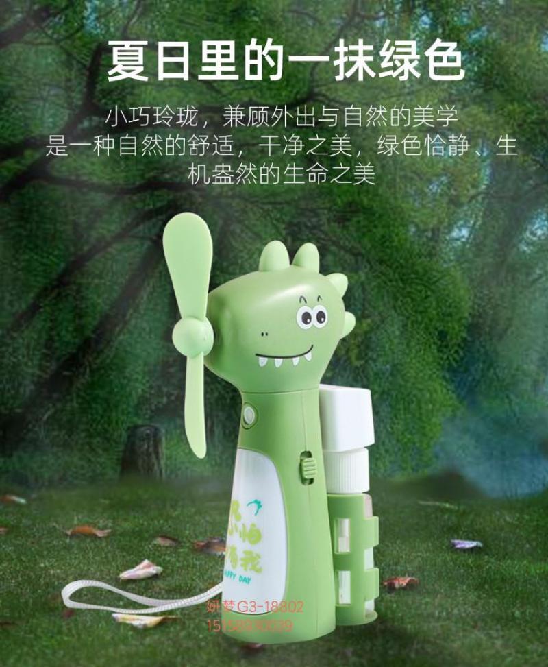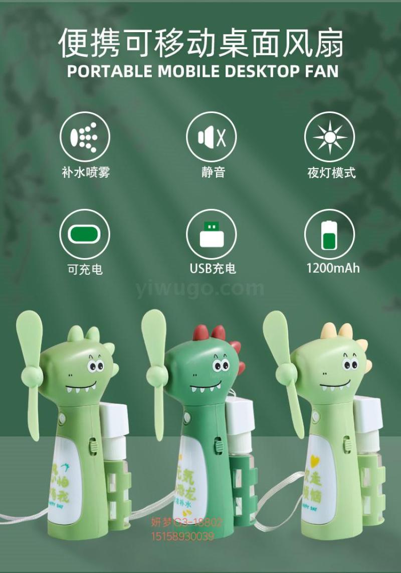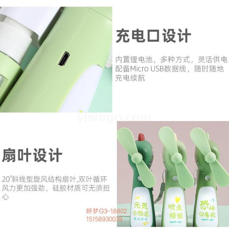 超萌恐龙喷水风扇可usb充电可爱学生创意夜灯随身便携迷你小风扇