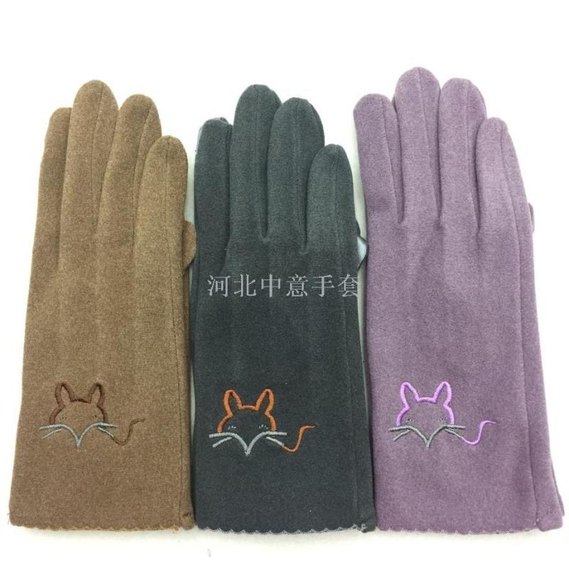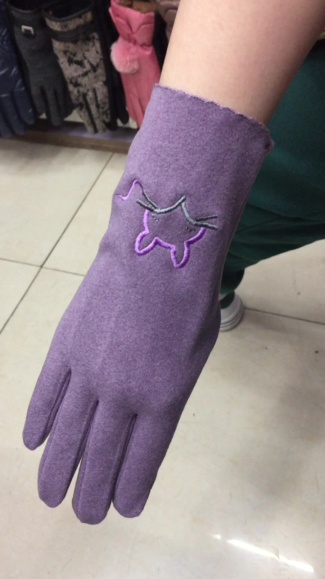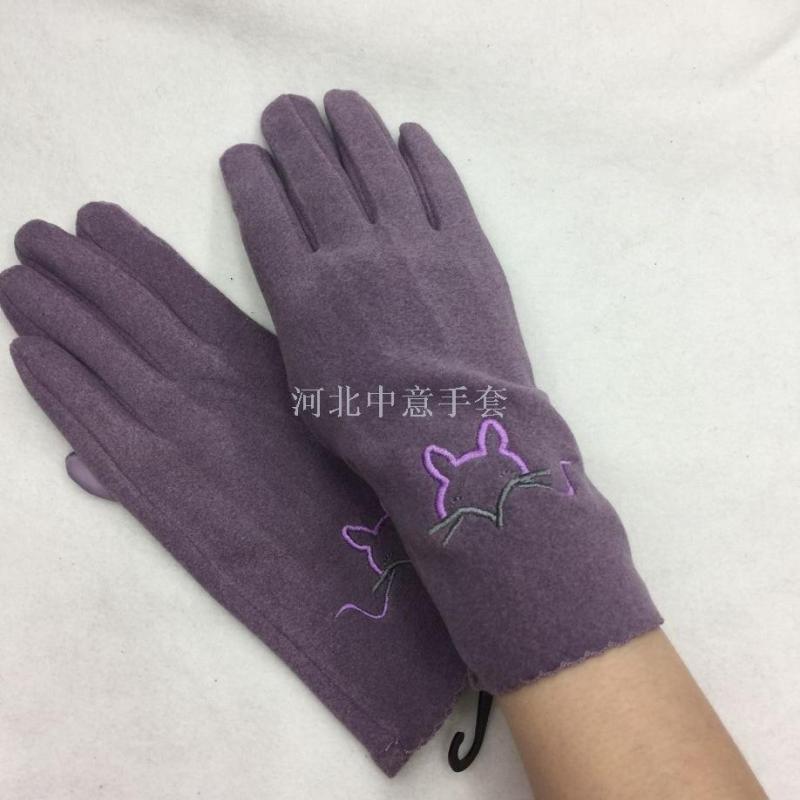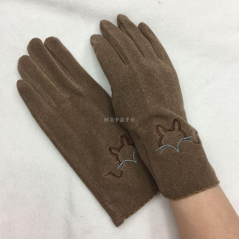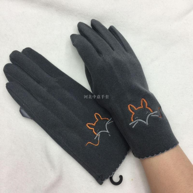 德绒兔绒秋冬季时尚手套女士加绒保暖触屏可爱小狐狸厂家直销