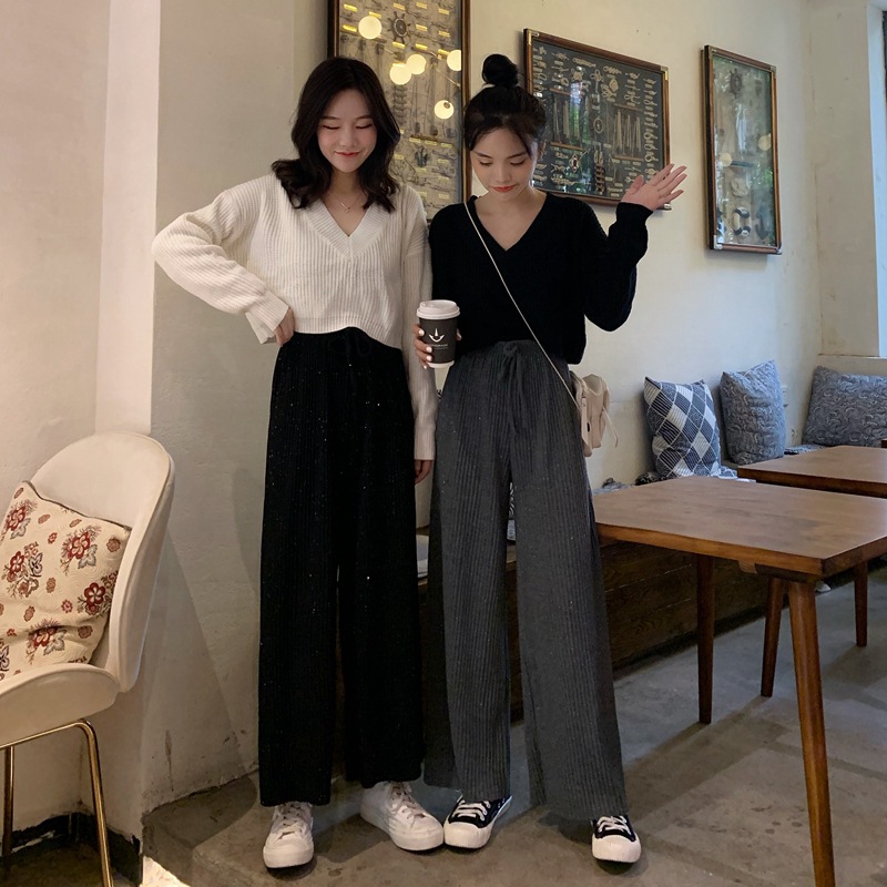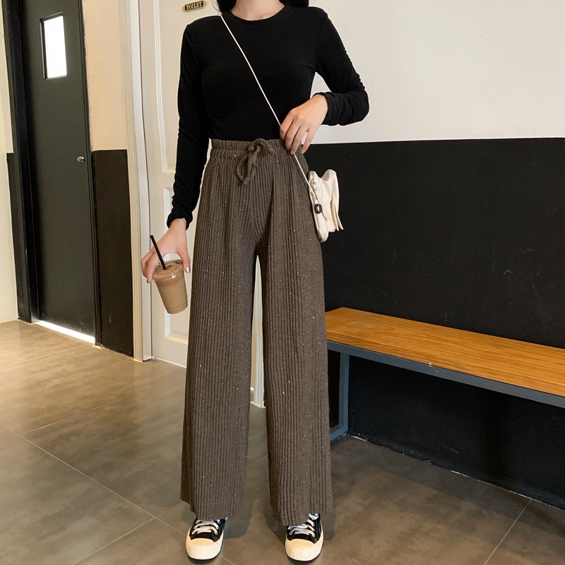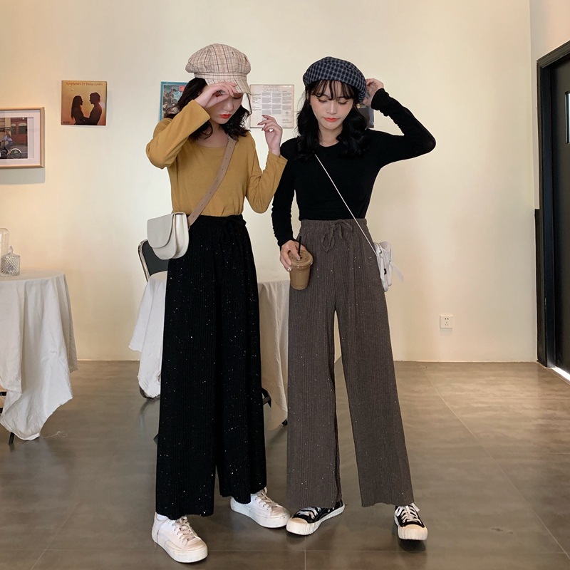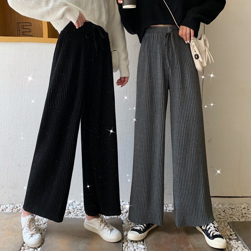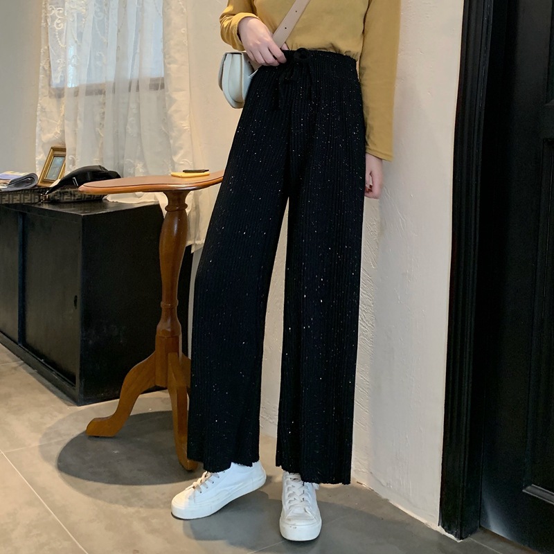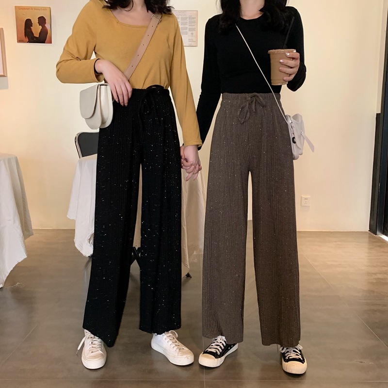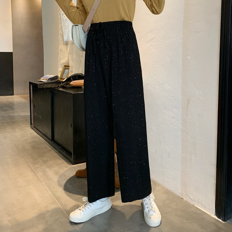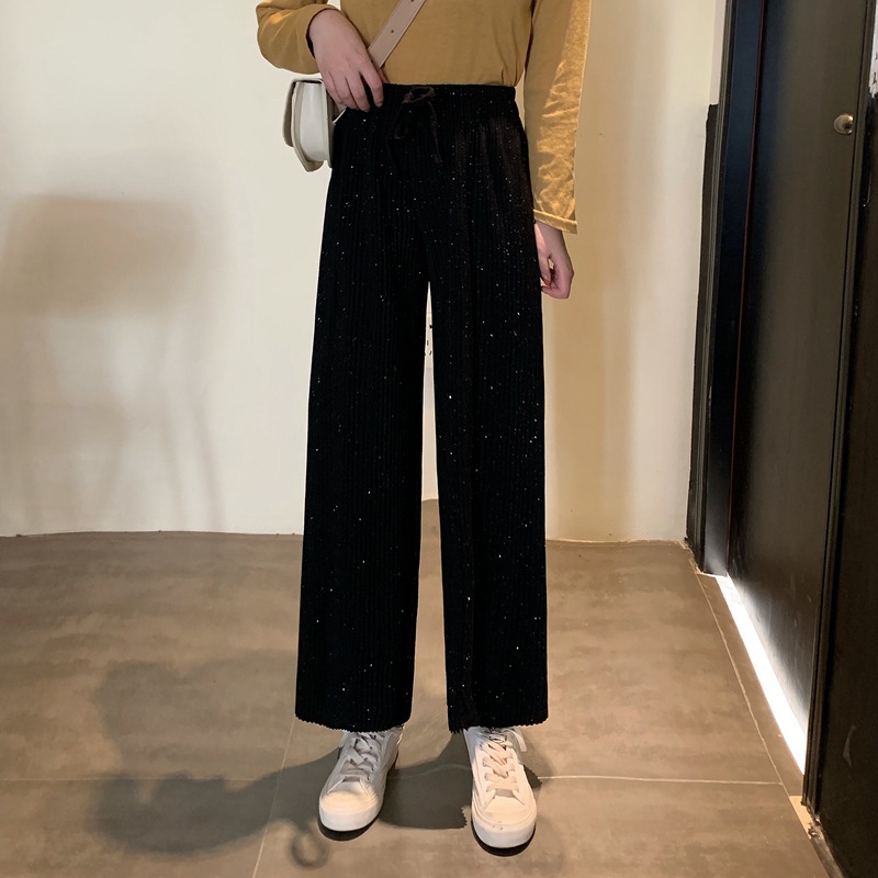 2020春秋季直筒裤子女学生韩版宽松百搭垂感休闲裤闪闪星星阔腿裤