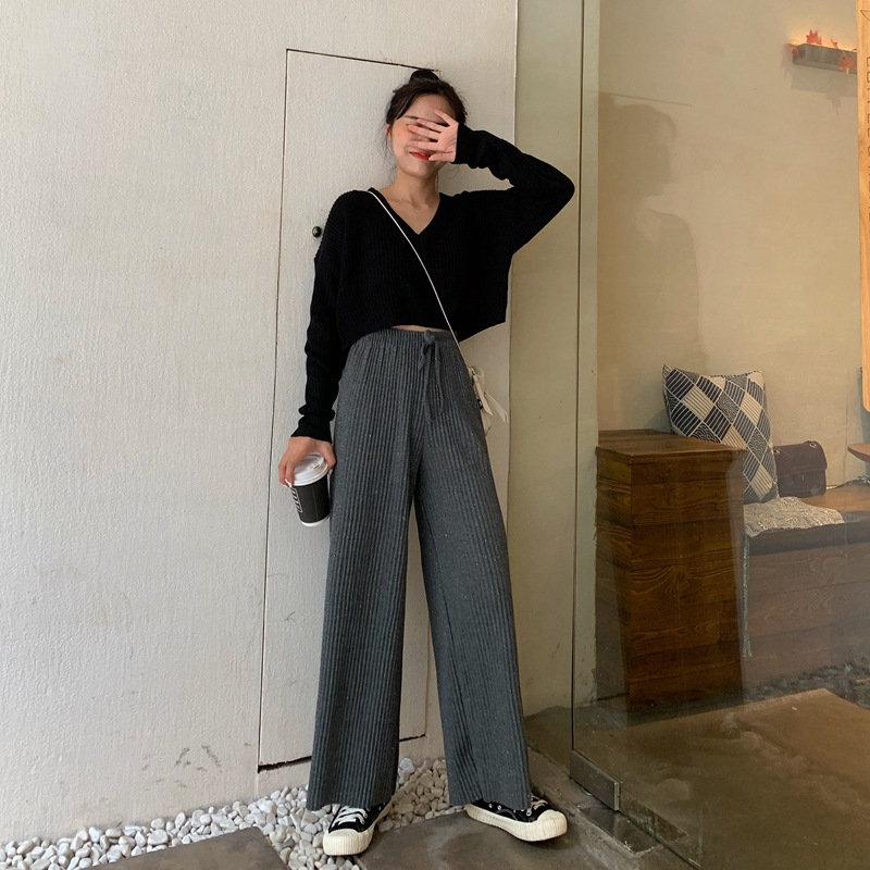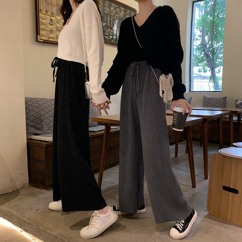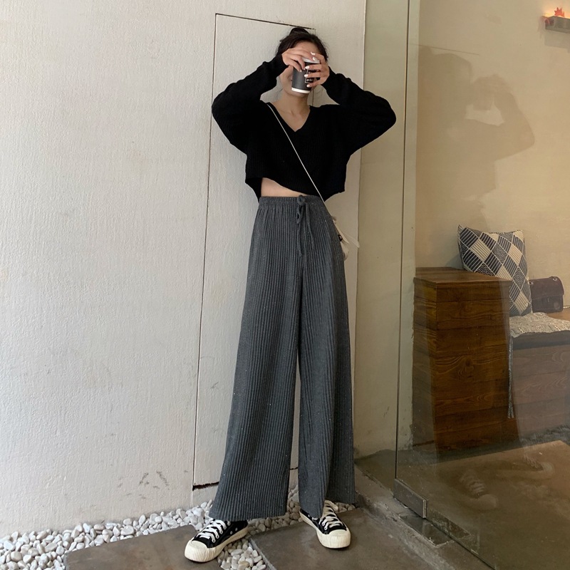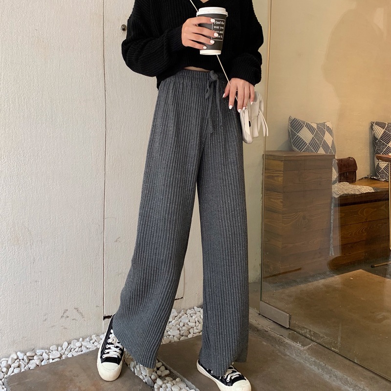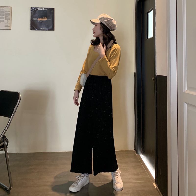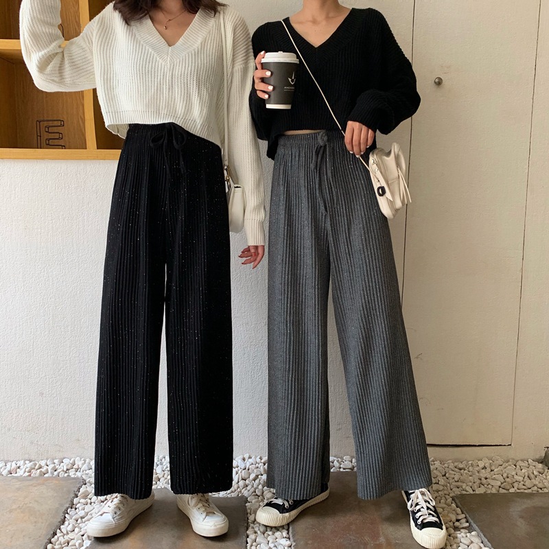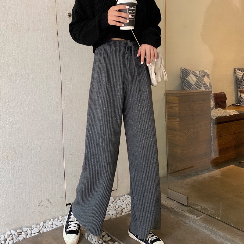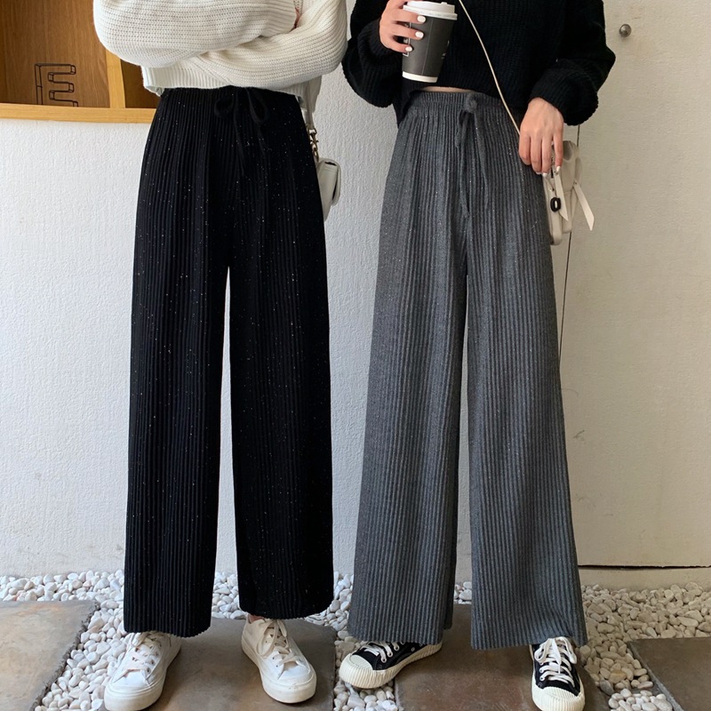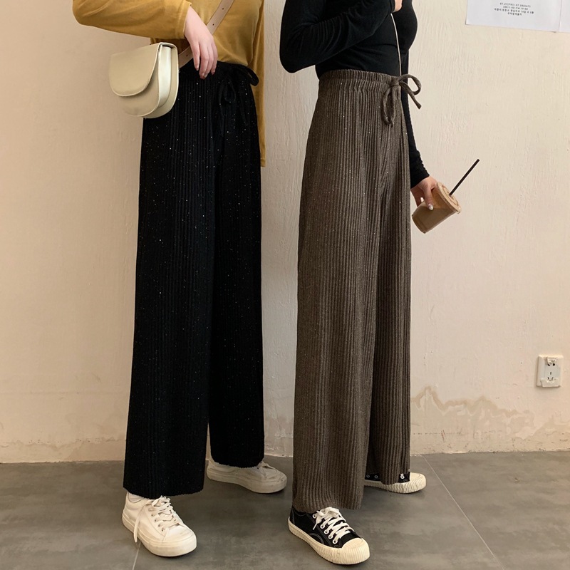 2020春秋季直筒裤子女学生韩版宽松百搭垂感休闲裤闪闪星星阔腿裤