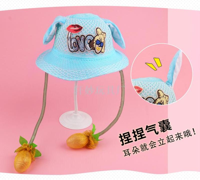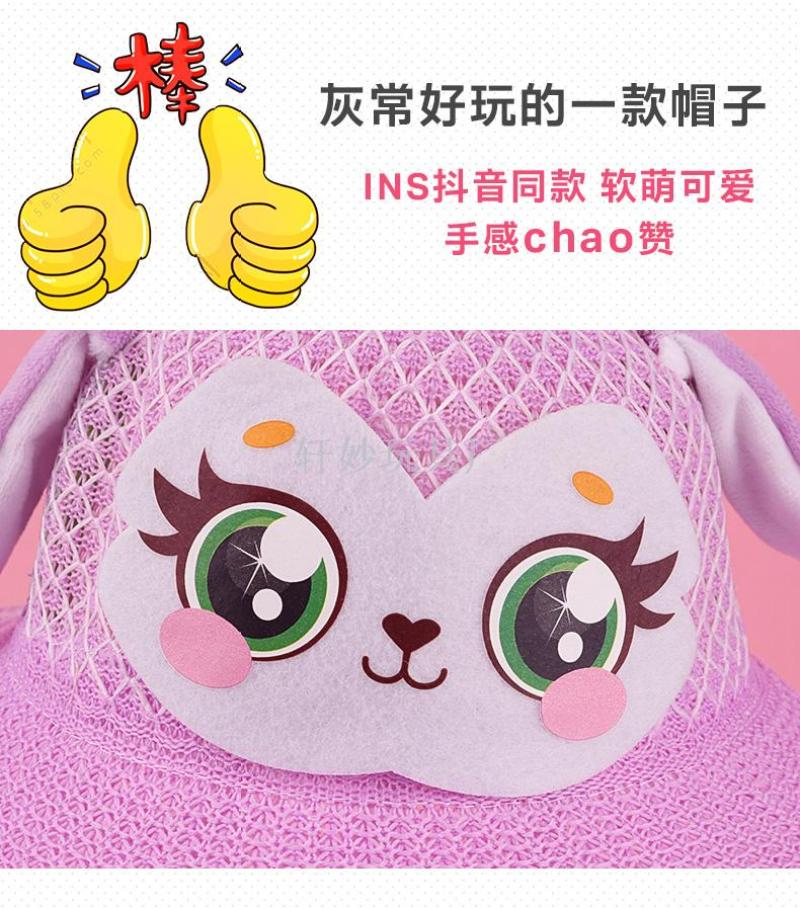耳朵会动的遮阳帽卡通凉帽儿童户外活动小孩帽子地摊热卖新款
