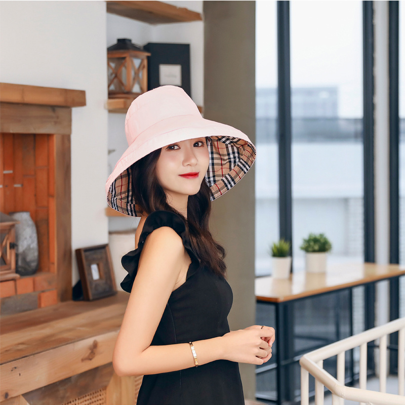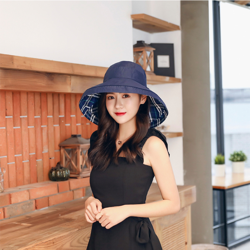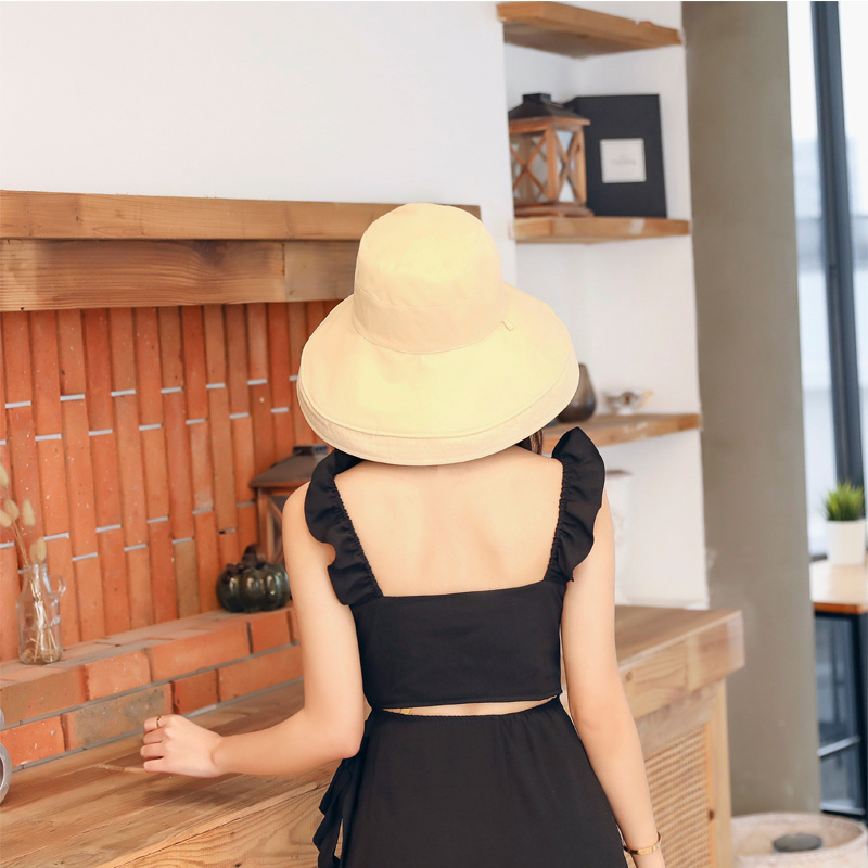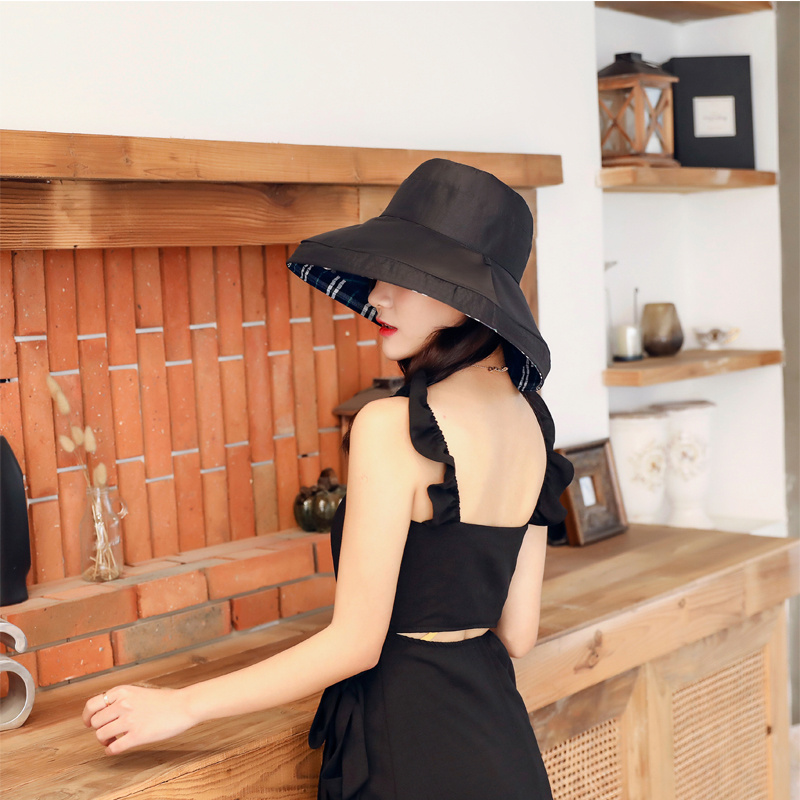 网红黑色渔夫帽女韩版潮百搭日系防晒遮脸防紫外线太阳遮阳帽夏季