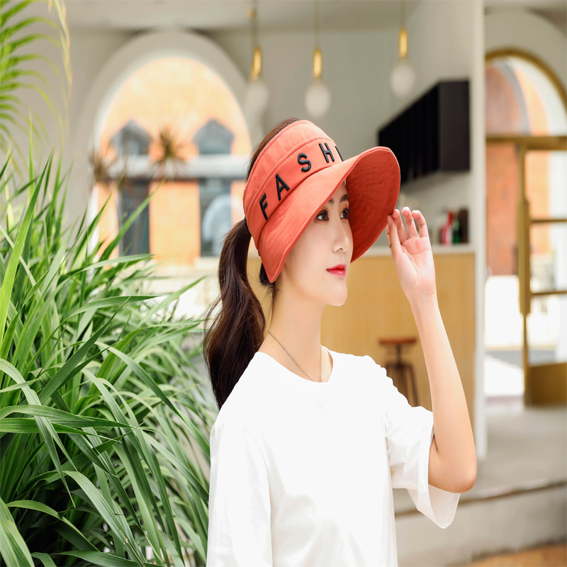 空顶遮阳帽女夏遮脸防紫外线防晒帽韩版百搭骑车出游沙滩帽