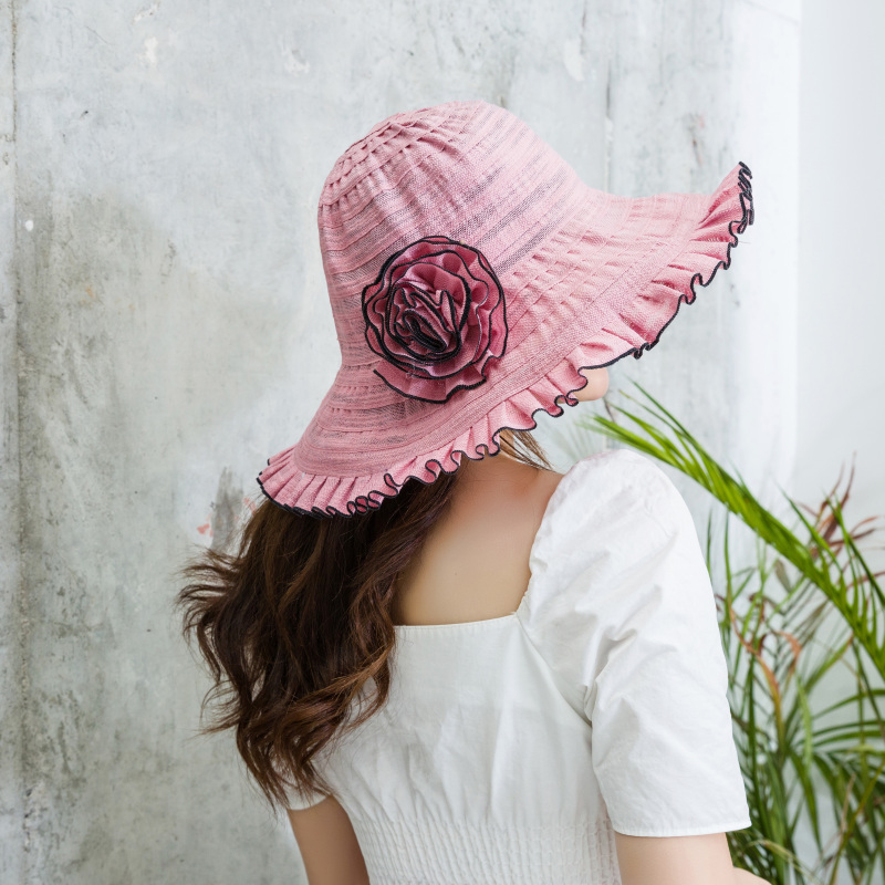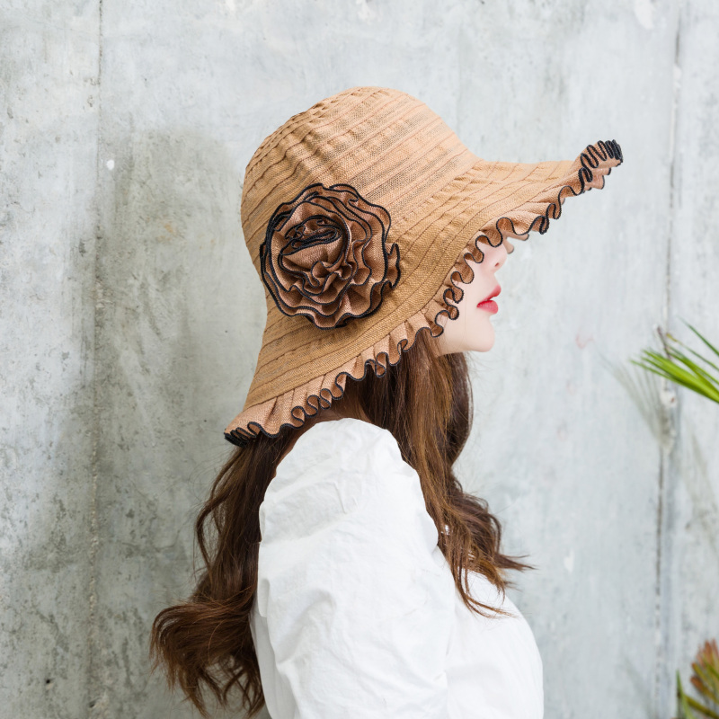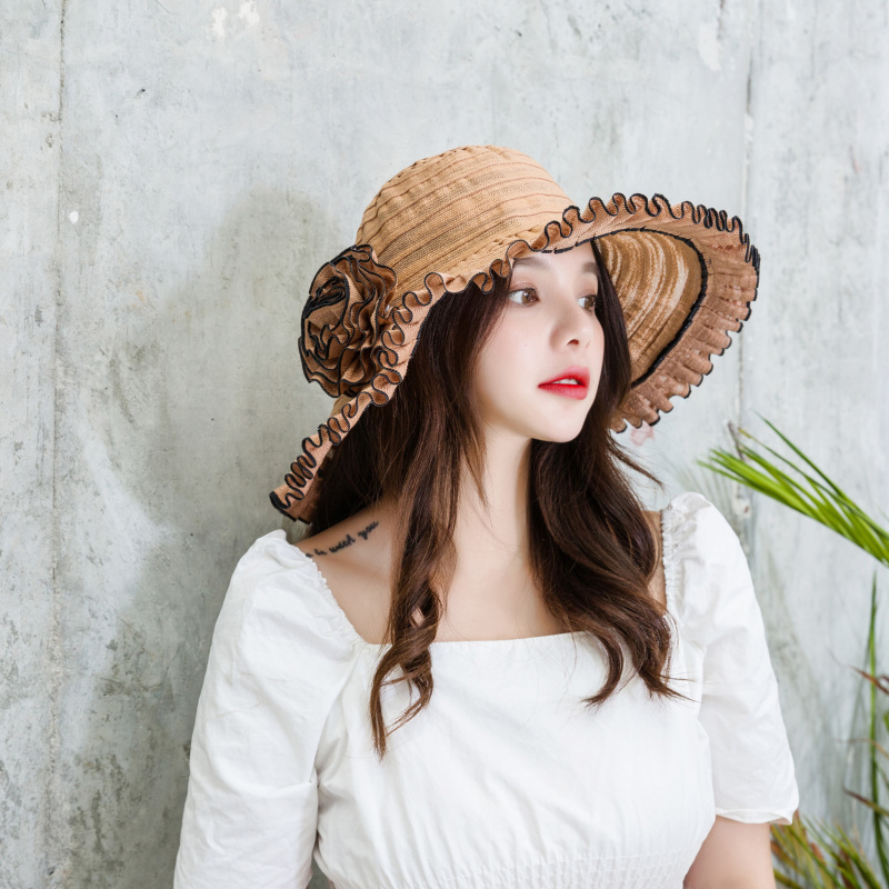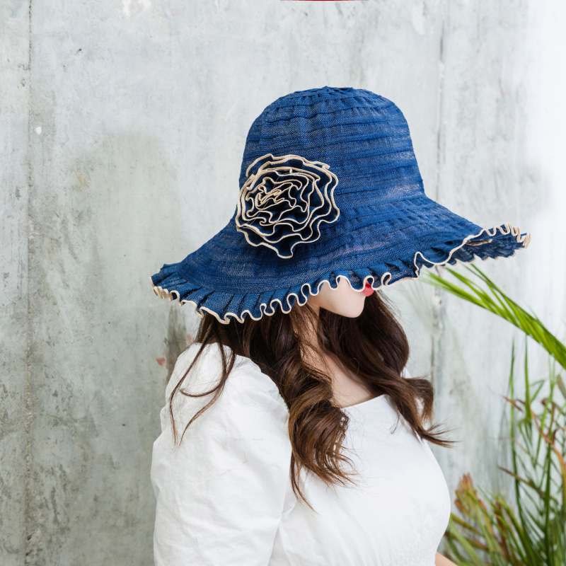 草帽女夏拉菲草帽沙滩帽子海边太阳帽遮阳帽渔夫帽出游防晒可折叠