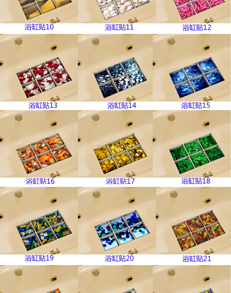 创意3D立体浴缸贴 仿真图案浴缸贴纸洗水间浴室吧台DIY自粘墙贴
