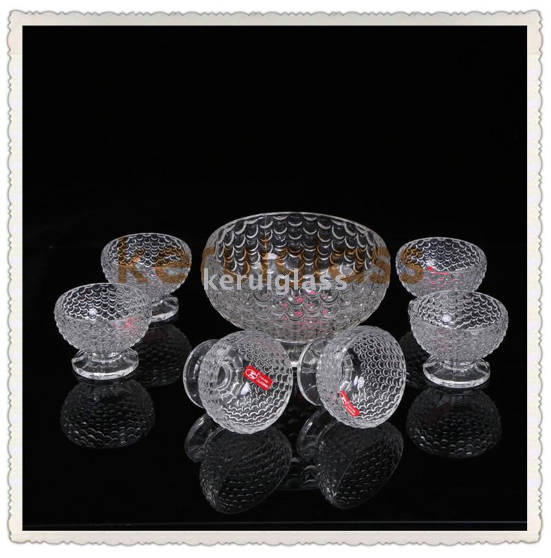 水果盘水晶玻璃果盘客厅创意欧式透明沙拉碗一大六小鱼鳞碗果盆
