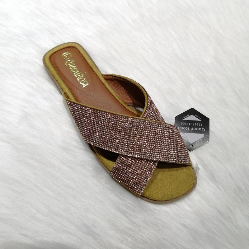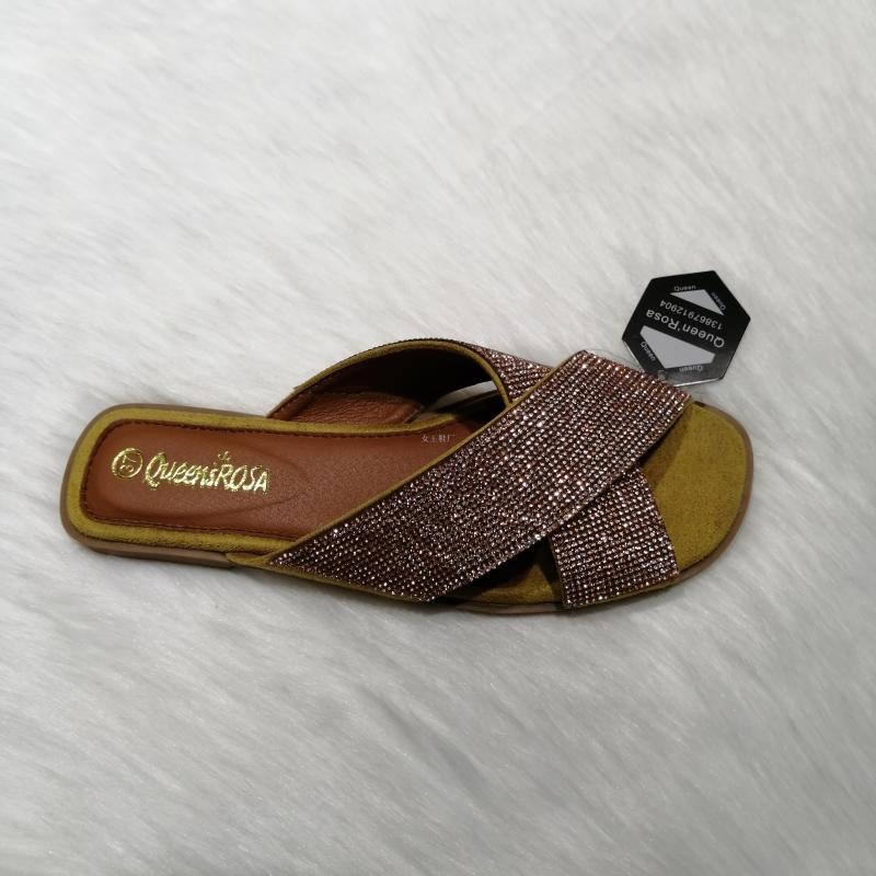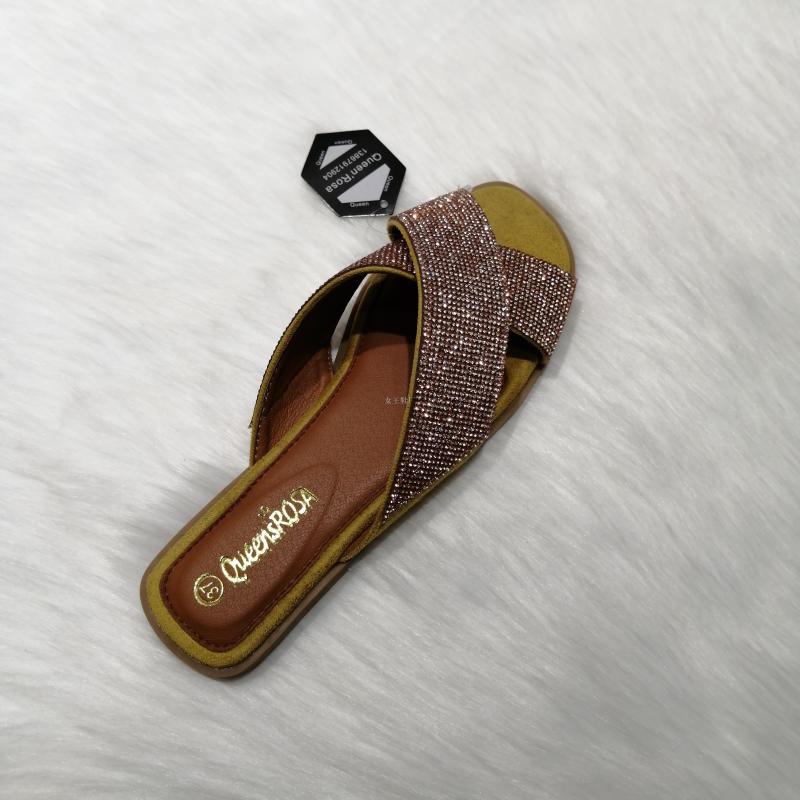 夏季热卖款交叉带水钻拖鞋柔软舒适百搭女士拖鞋