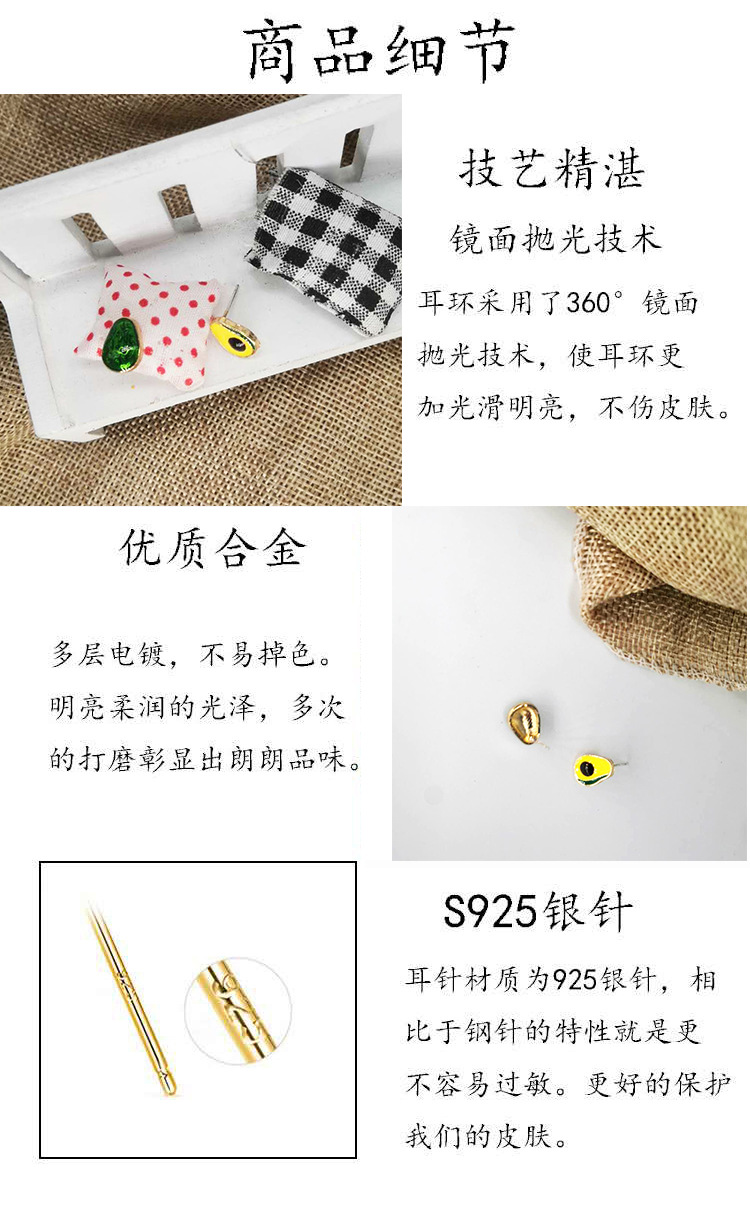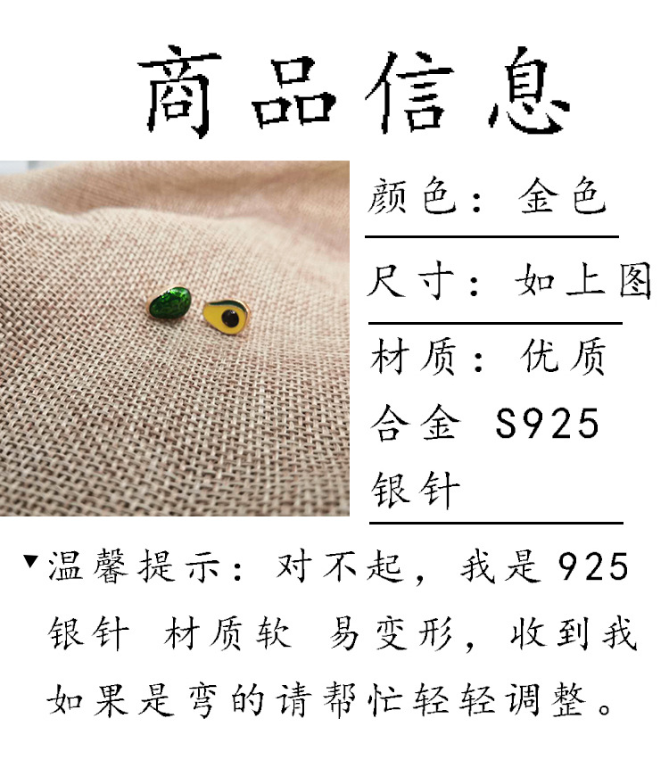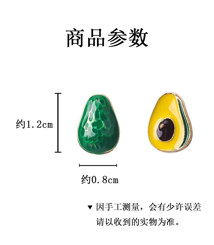 牛油果不对称耳环新款潮百搭清新耳钉小巧精致耳坠甜美个性耳饰女