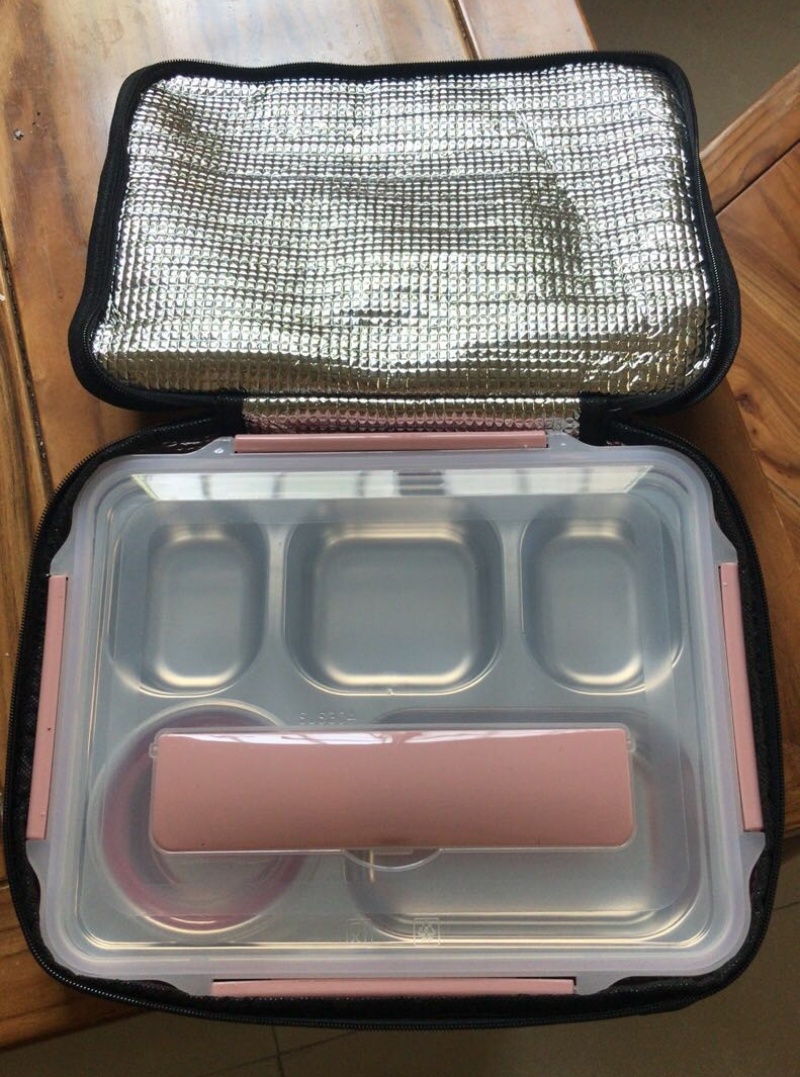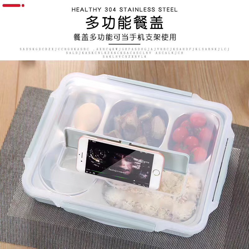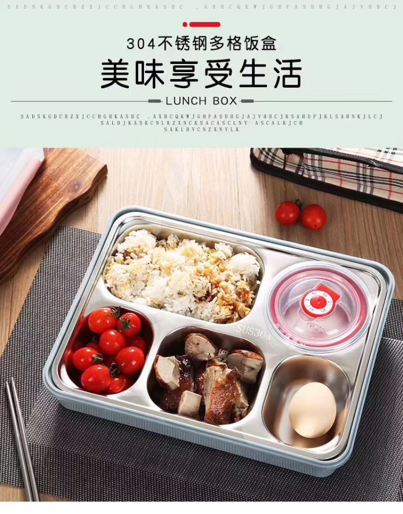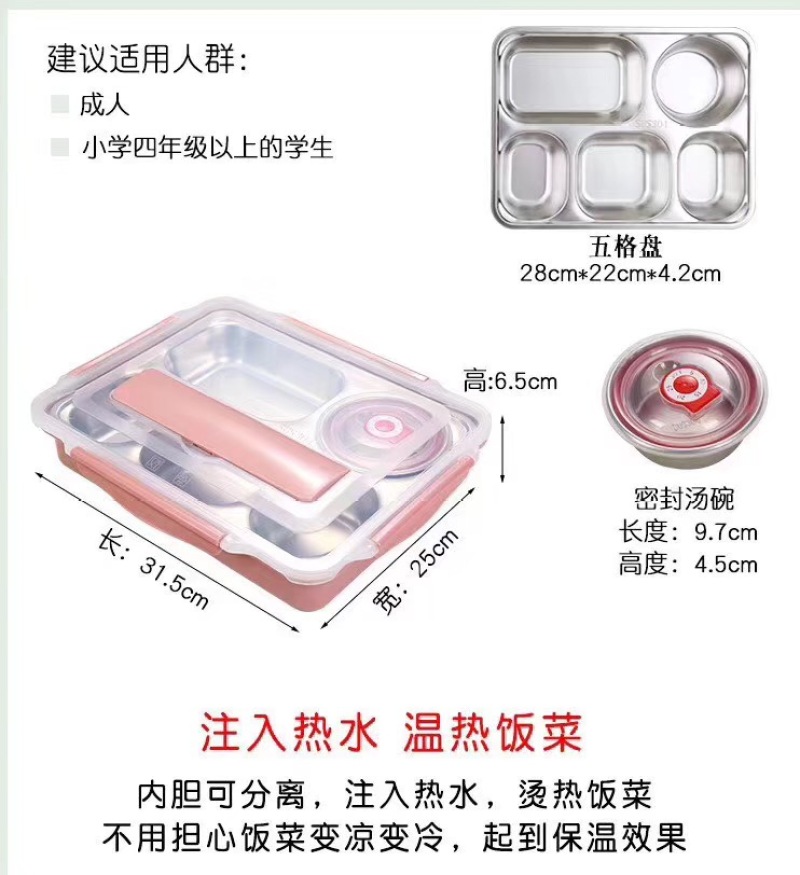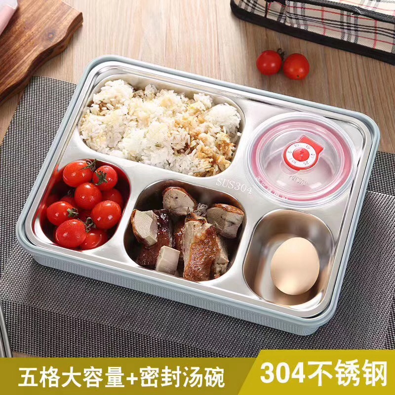 304不锈钢便当饭盒保温加深五格餐盘带盖304汤碗+筷勺+保温包