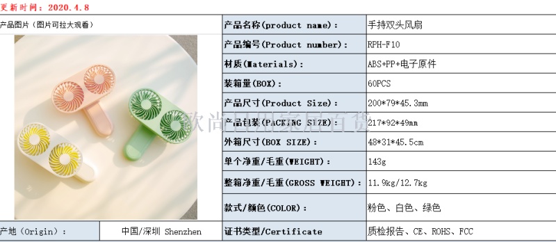 F10双头风扇USB迷你手持双叶便携户外戴桌面多功能小风扇