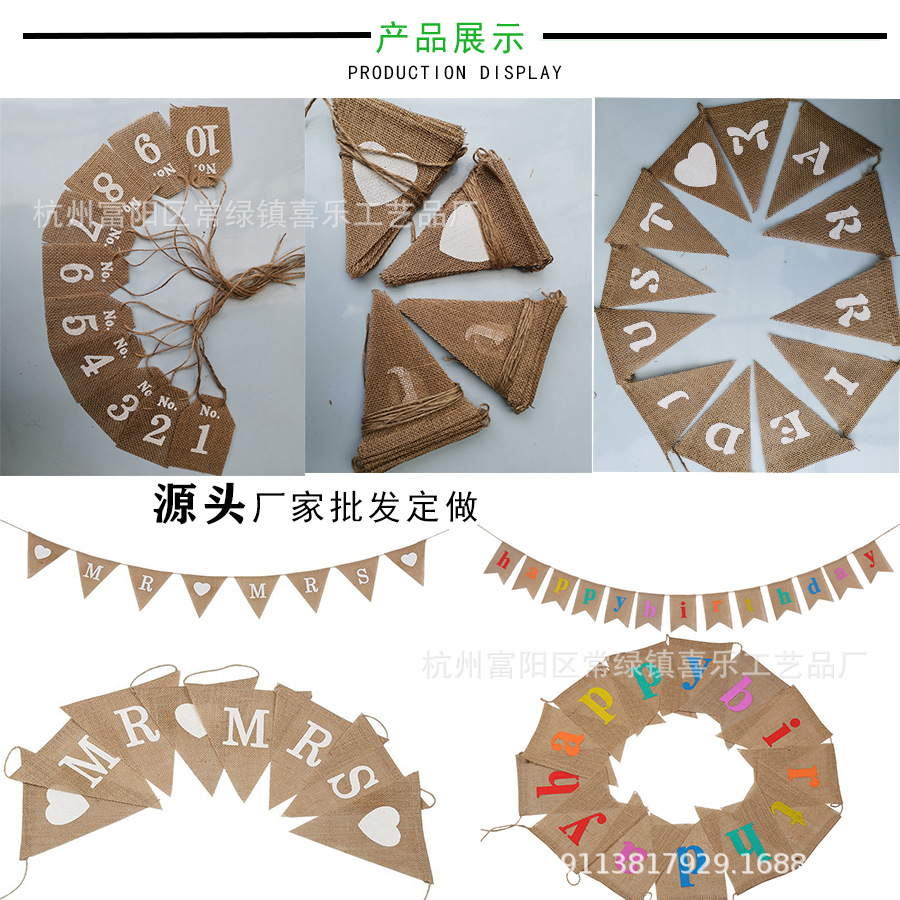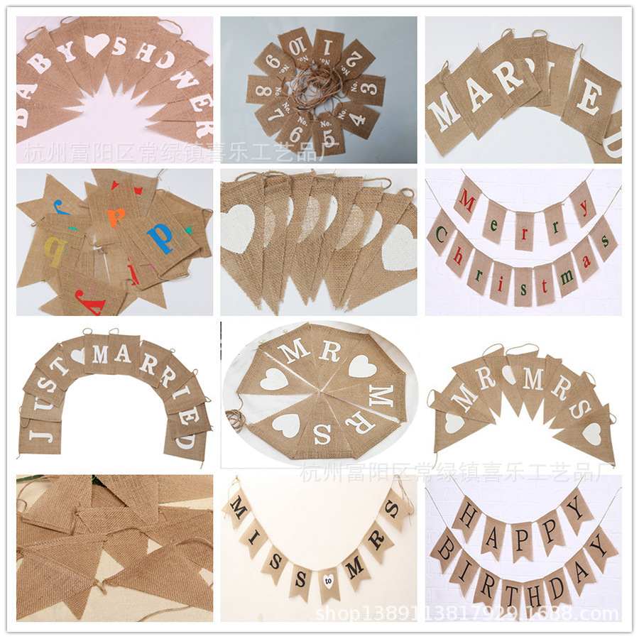 厂家直销麻布旗 三角旗燕尾旗方形旗 婚庆派对麻布彩旗麻布拉旗