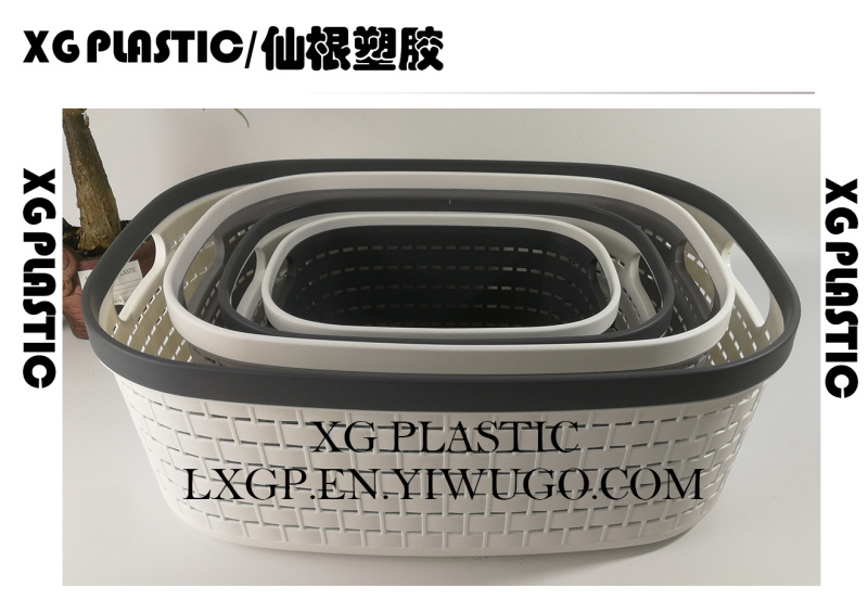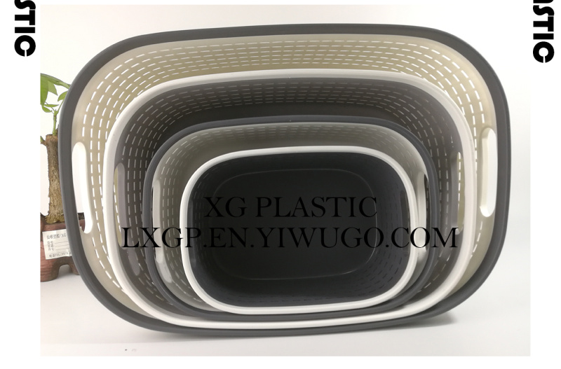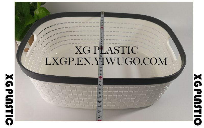 塑料收纳篮新款长方桌面收纳篮简约镂空日系洗澡篮优质加厚脏衣篮