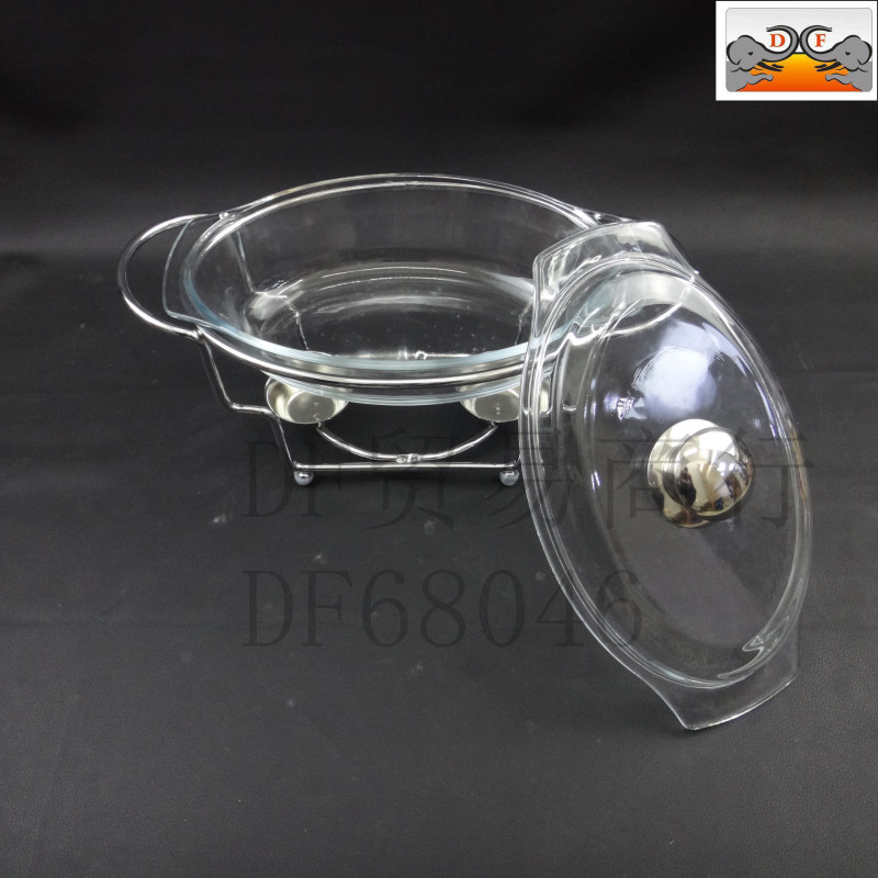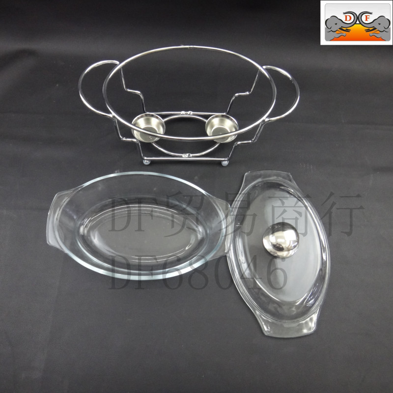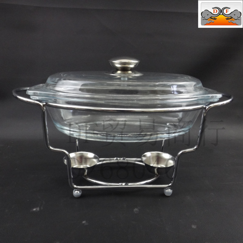 DF68080厨房酒店椭圆玻璃不锈钢自助餐炉布菲酒精炉视频加热容器