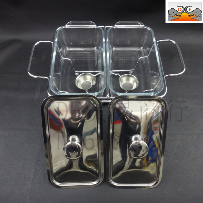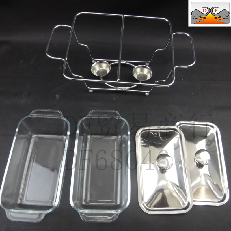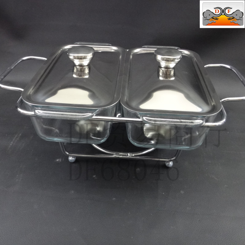DF68080双连玻璃酒精炉不锈钢自助餐炉布菲炉玻璃餐炉不锈钢盖