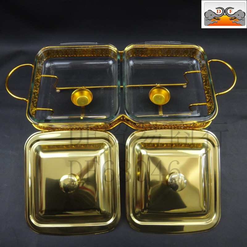 DF68080厨房酒店用方形连体不锈钢自助餐炉酒精炉布菲炉玻璃炉