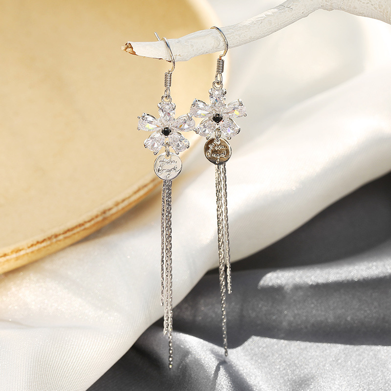 S925银针长款气质流苏时尚韩版大脸显瘦淑女耳饰简约女网红耳环