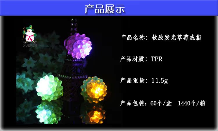 爆款圣诞发光玩具 led彩色手指灯草莓闪光戒指 地摊玩具厂家直销