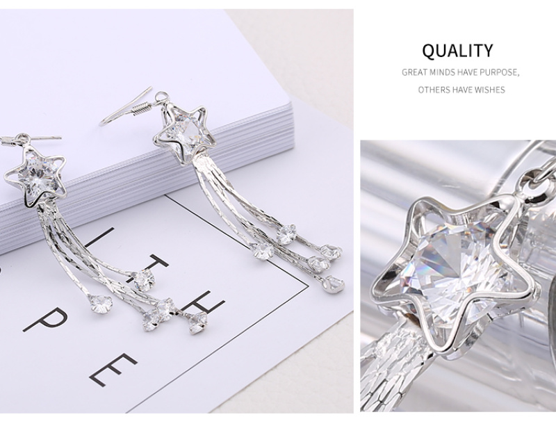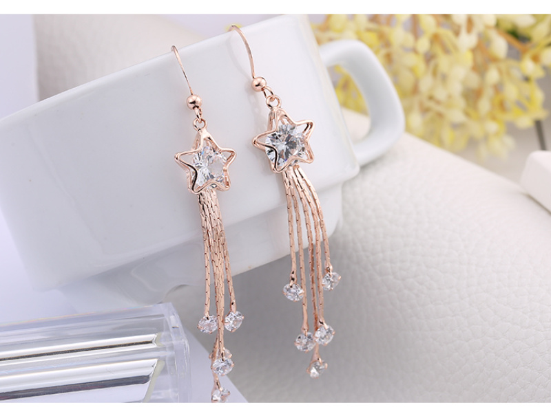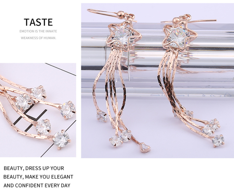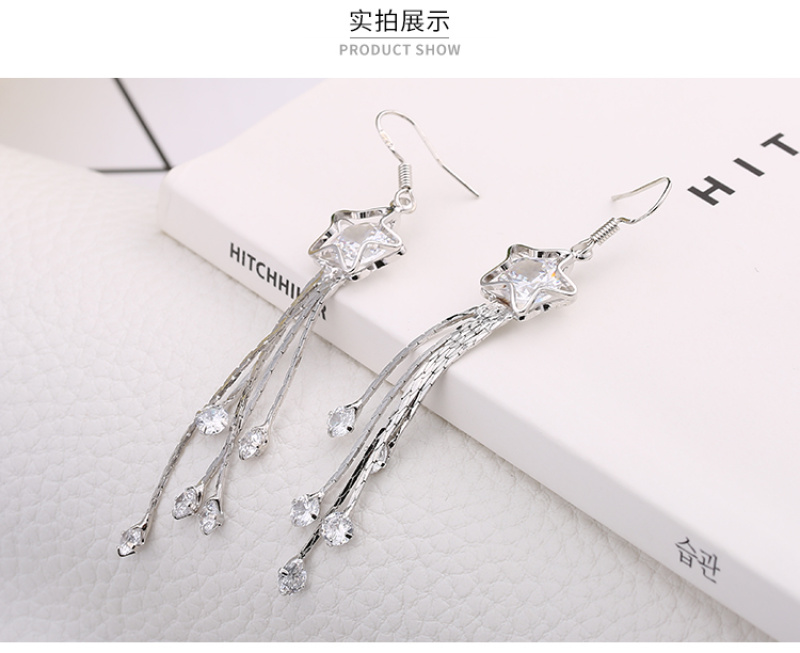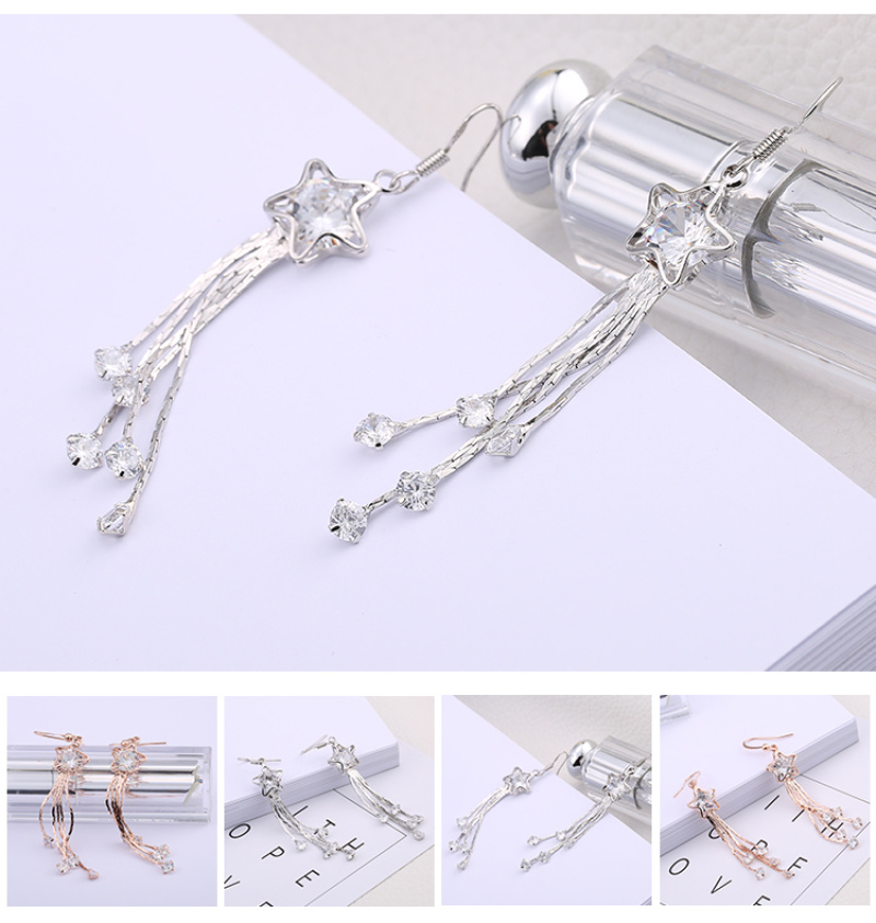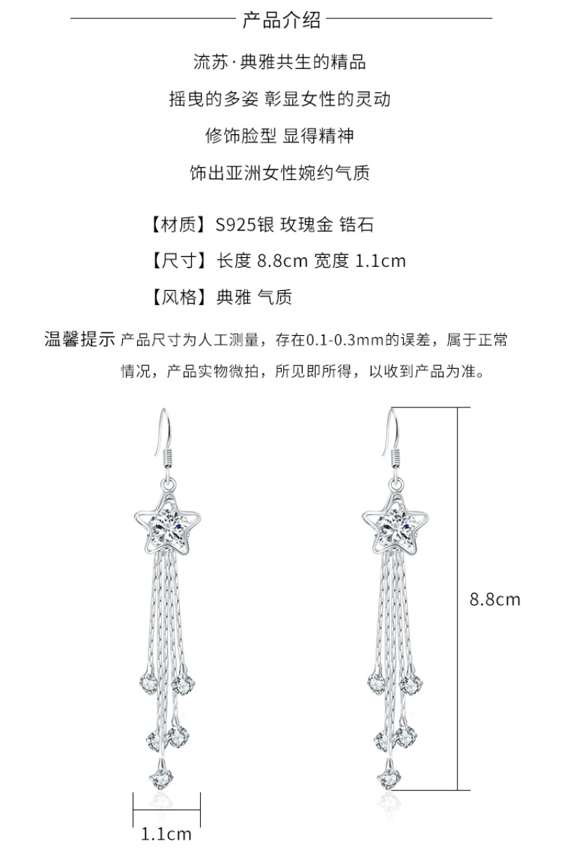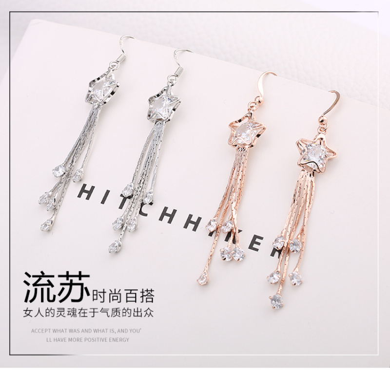 耳环女韩国气质长款简约925流苏防过敏耳坠水晶耳钉厂家批发直销