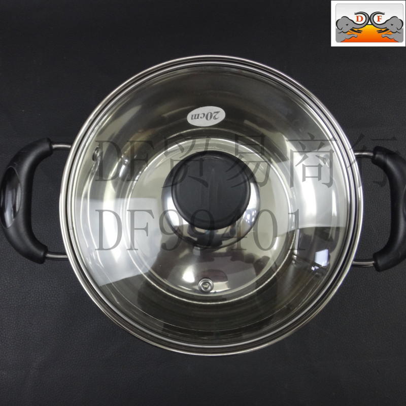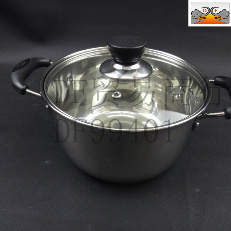 DF99401鼎发不锈钢厨房酒店用品餐具韩式单底复底双耳汤锅 泡面锅