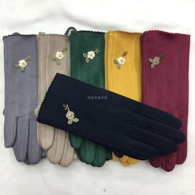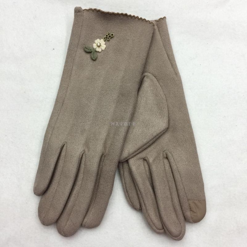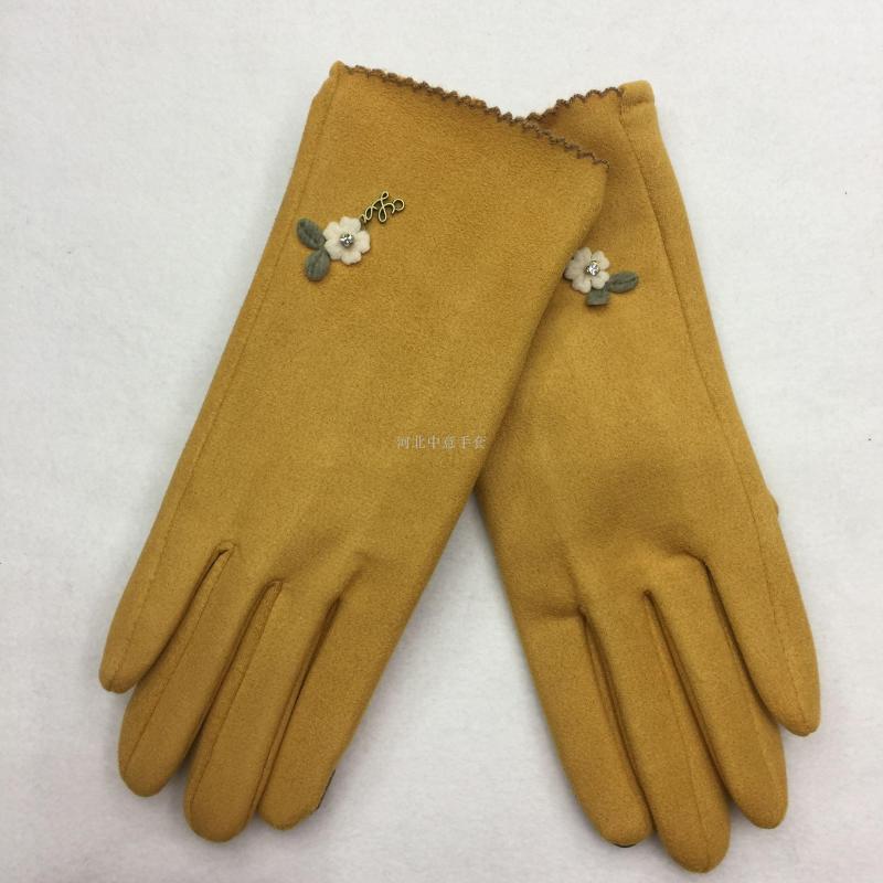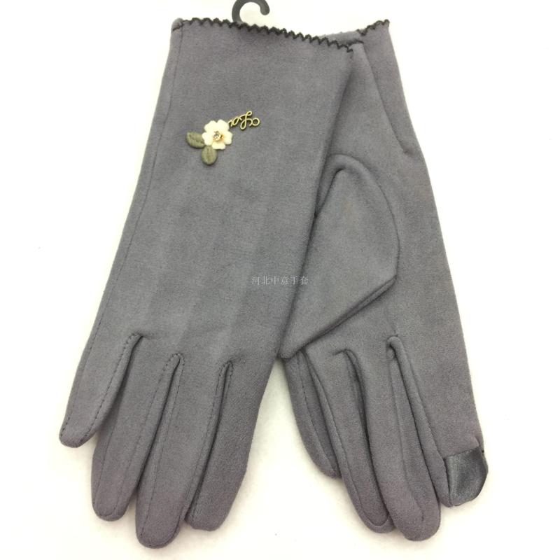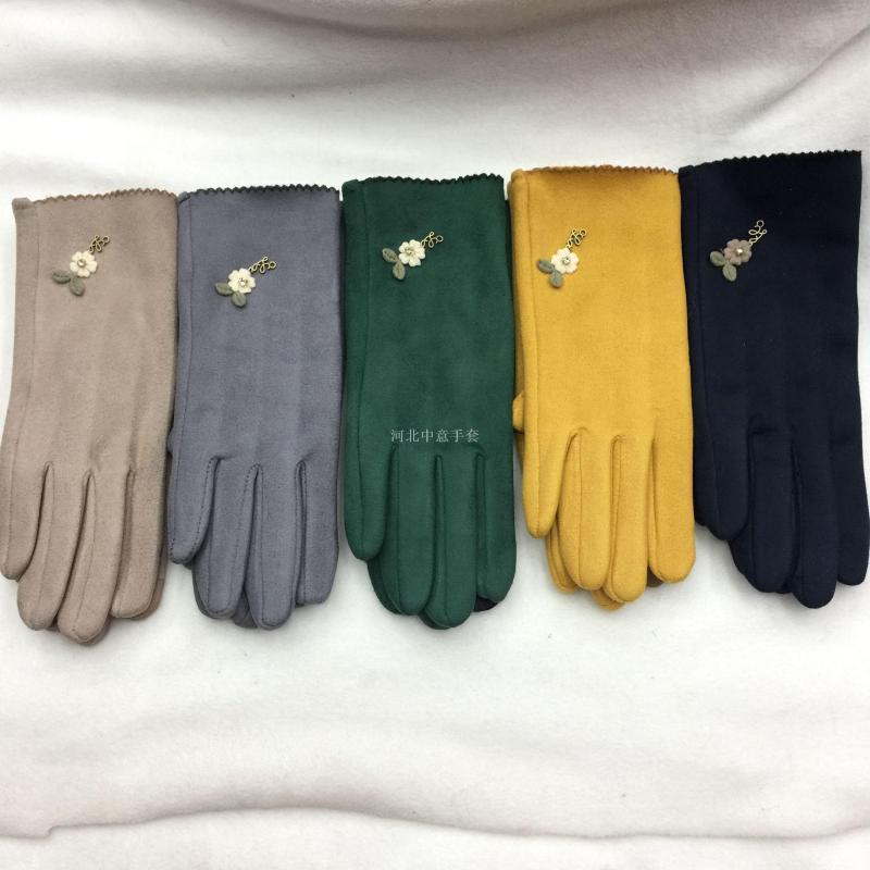 厂家直销新款秋冬女士保暖加绒骑行开车 麂皮绒时尚触屏手套