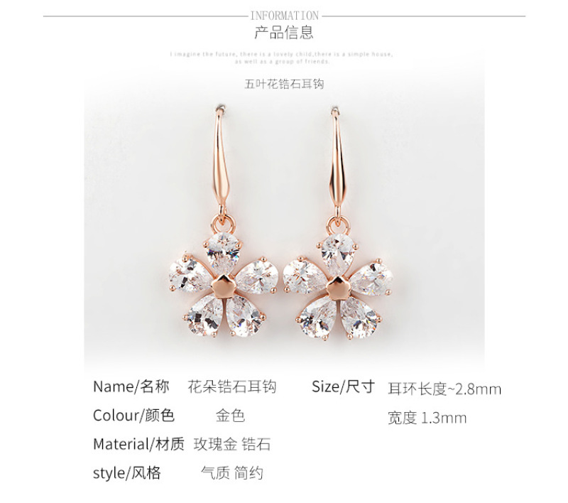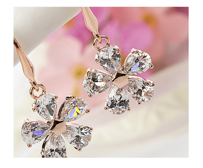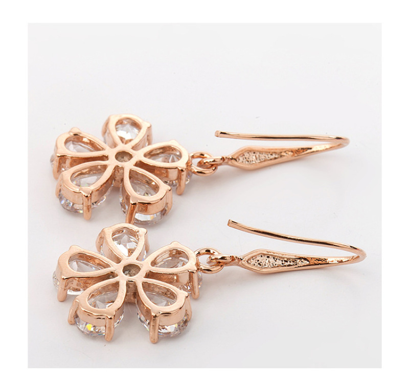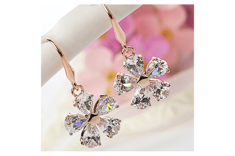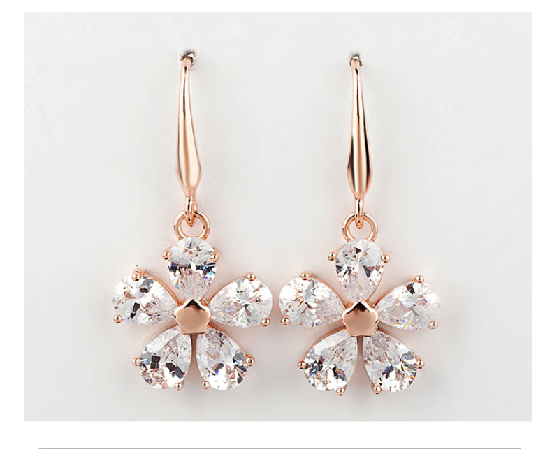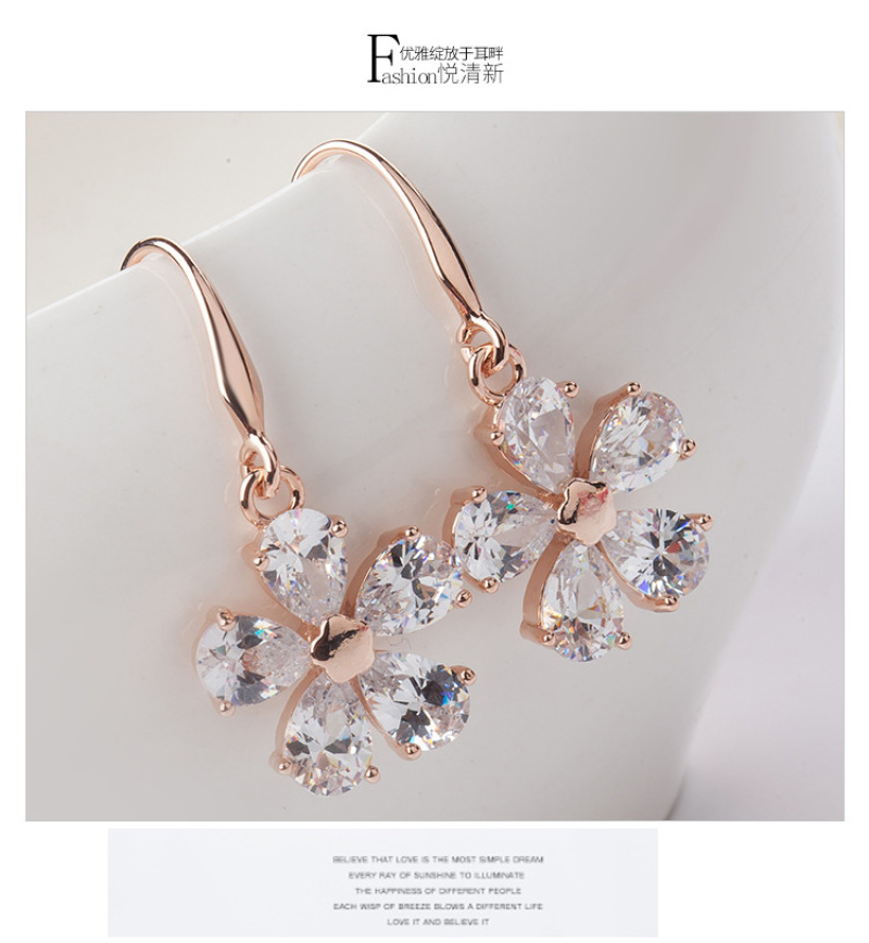 玫瑰金耳饰锆石耳坠花朵时尚韩国风格夸张女耳环厂家直销批发