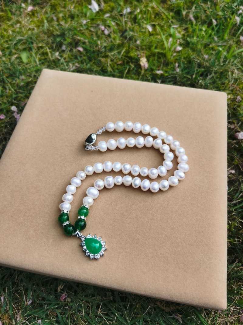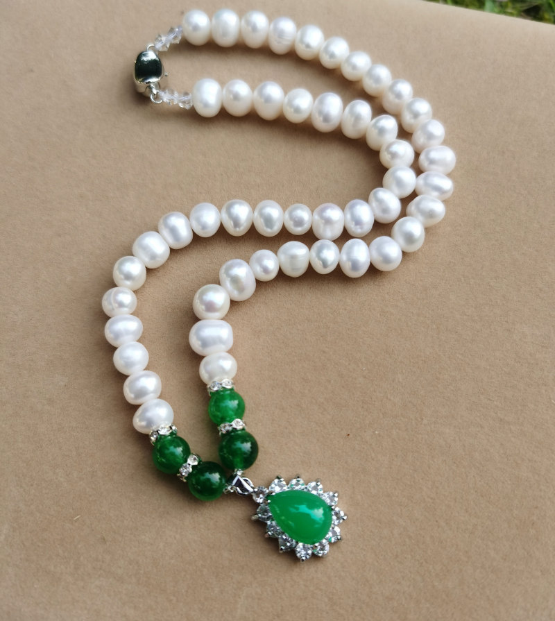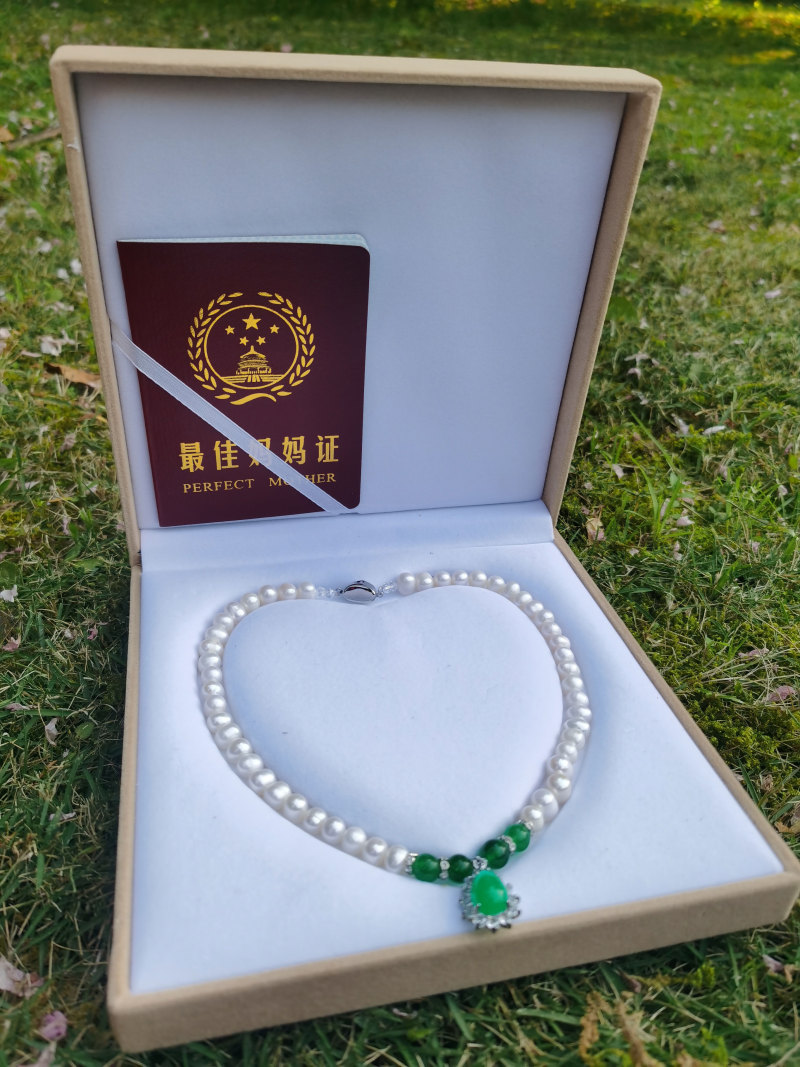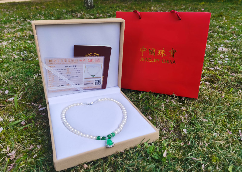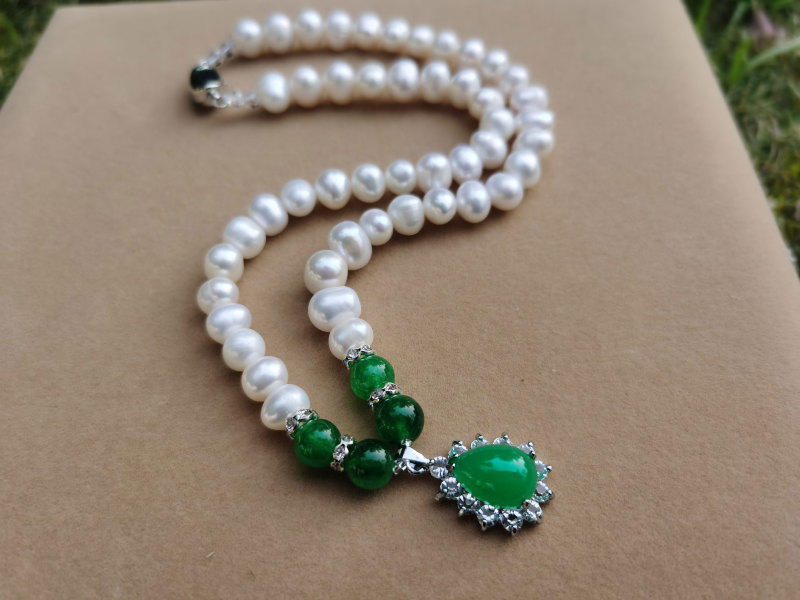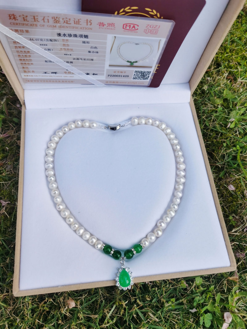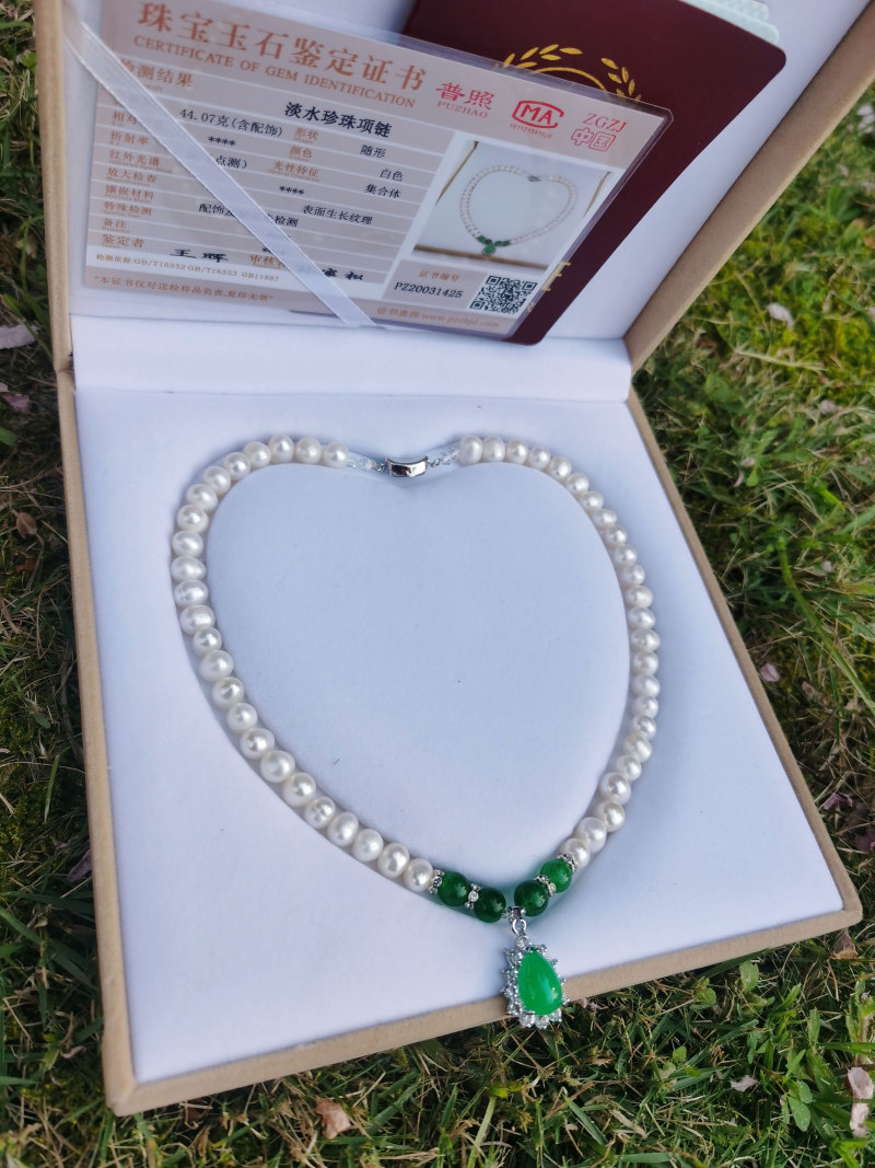 天然淡水珍加绿玉项链套装母亲节商场金店活动促销送妈妈