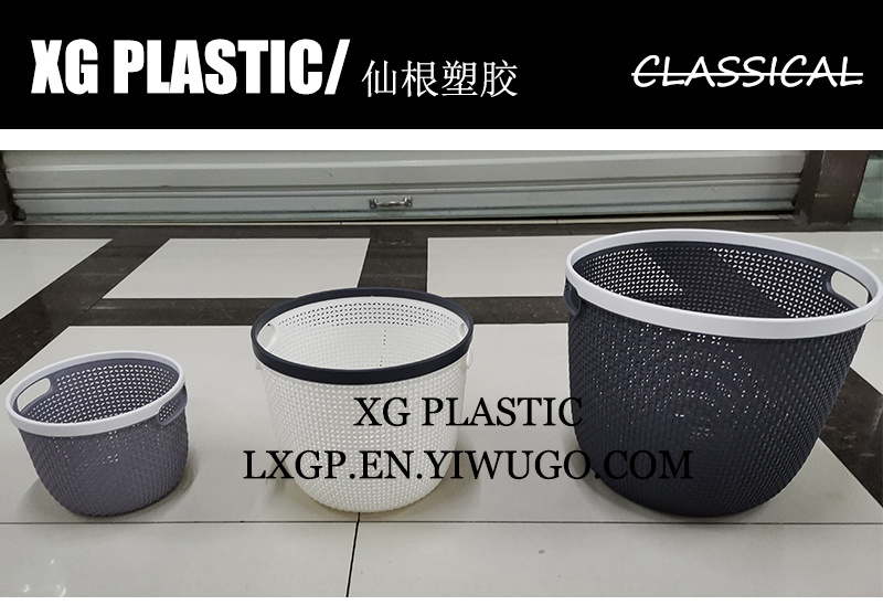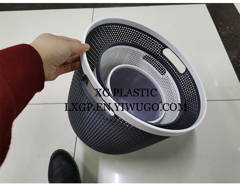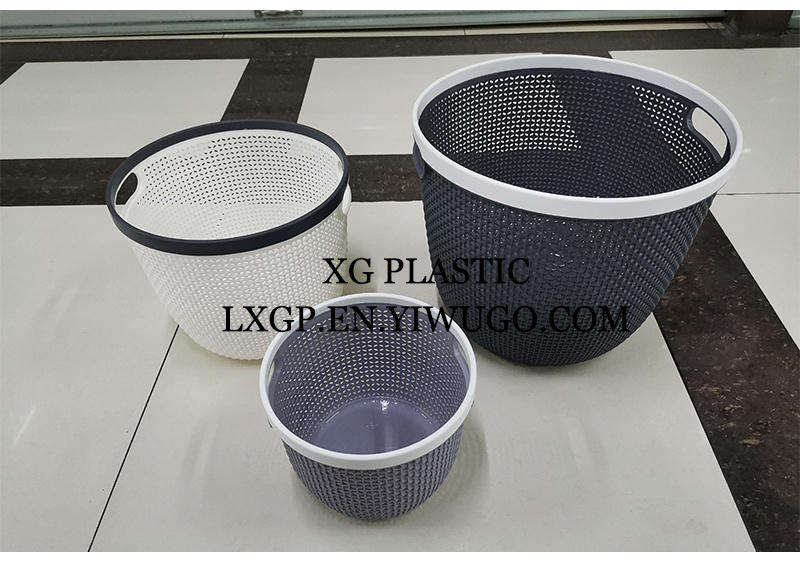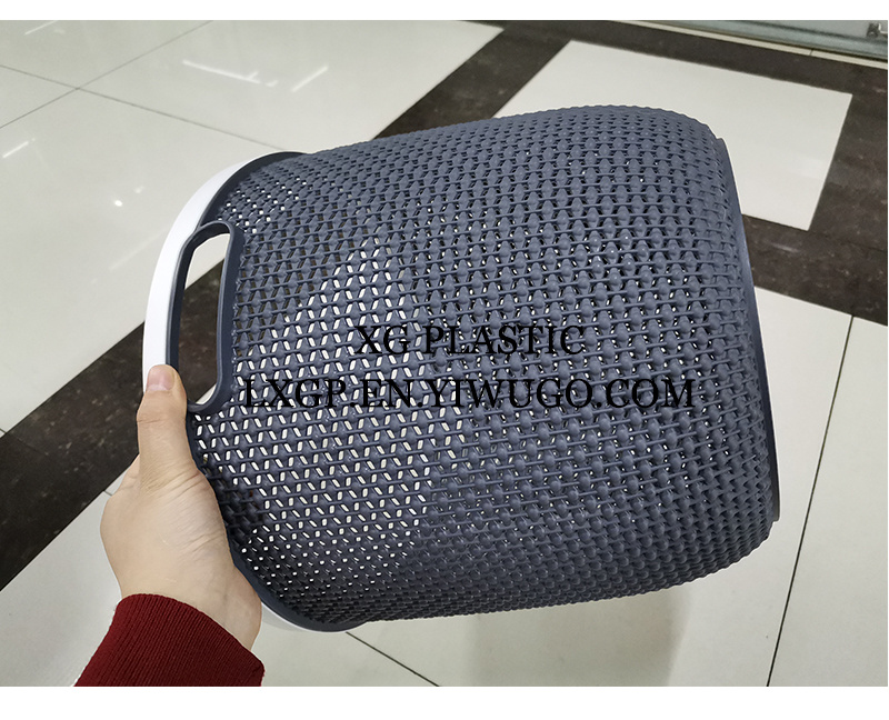 塑料收纳篮新款圆形桌面收纳篮简约镂空日系洗澡篮优质加厚脏衣篮