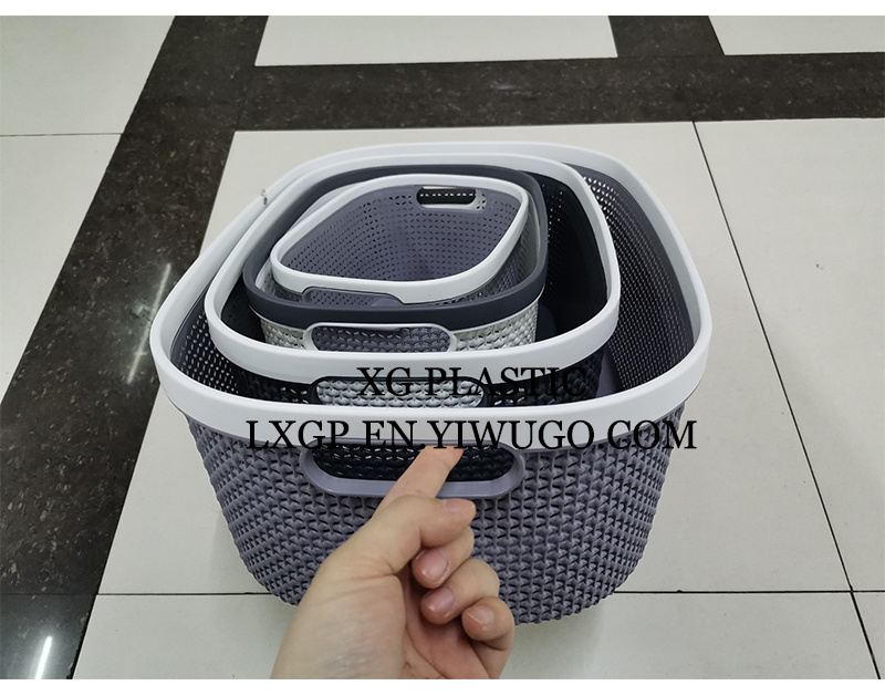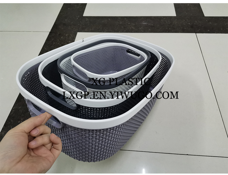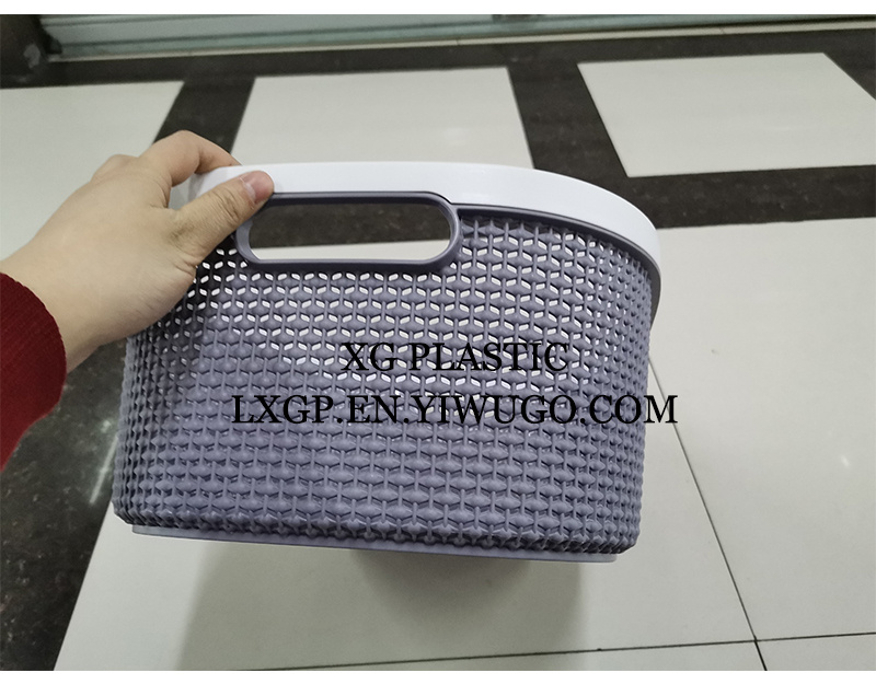 塑料收纳篮新款长方桌面收纳篮简约镂空日系洗澡篮优质加厚脏衣篮