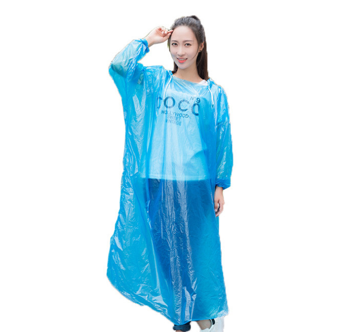 批发一次性雨衣户外徒步套头款加厚系带便携式男女成人连体雨披PE