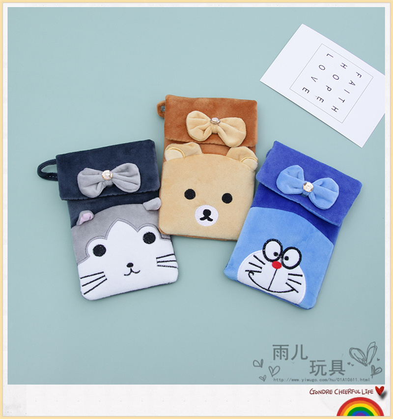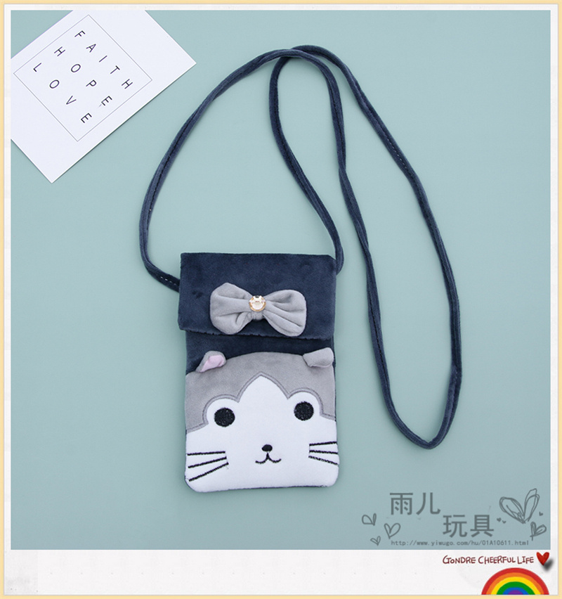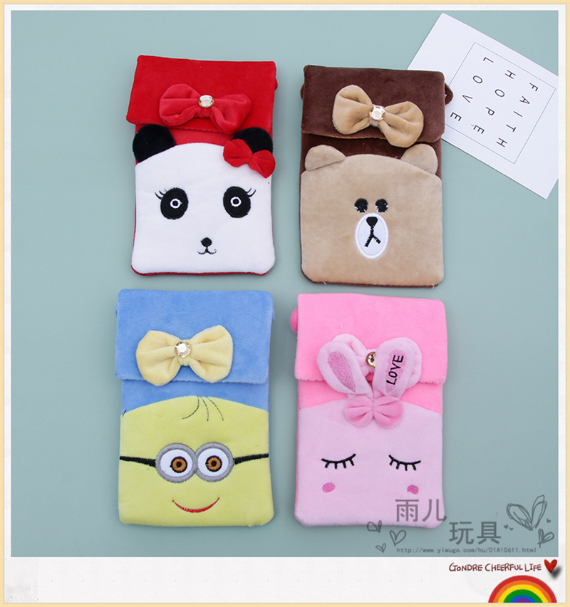 毛绒包包儿童可爱铁扣小包包翻盖刺绣手机包单层斜挎包小孩毛绒包