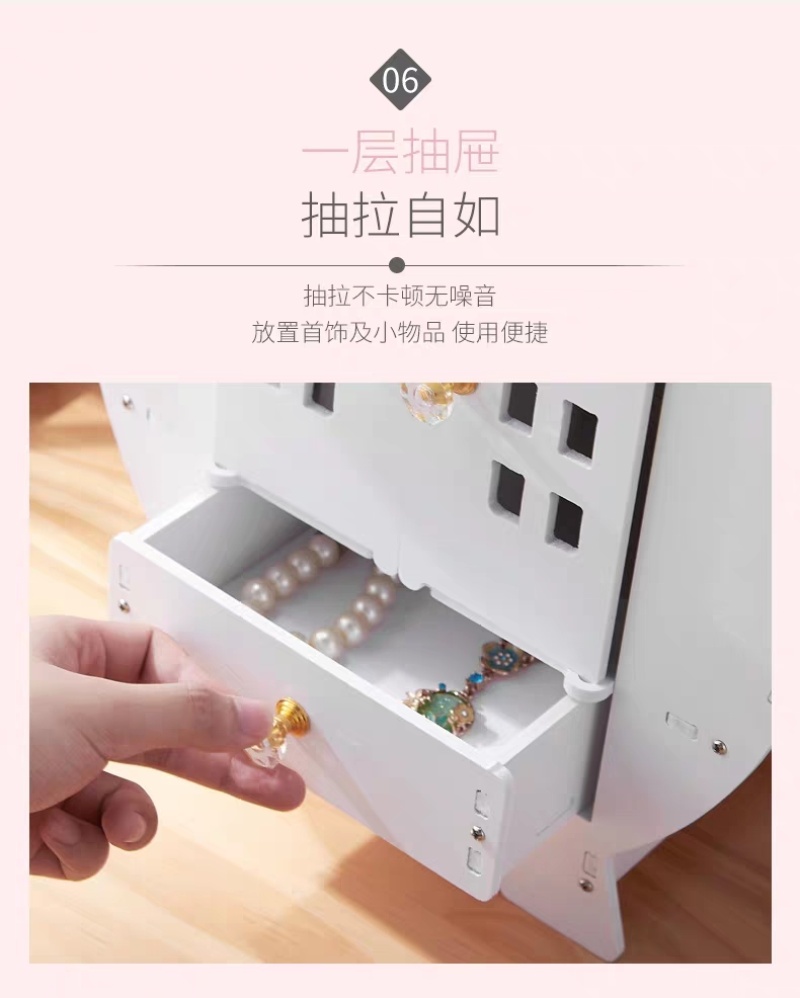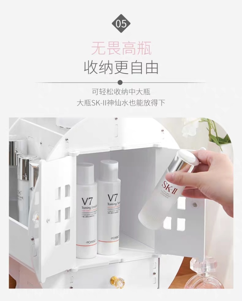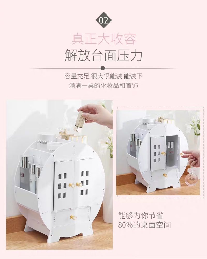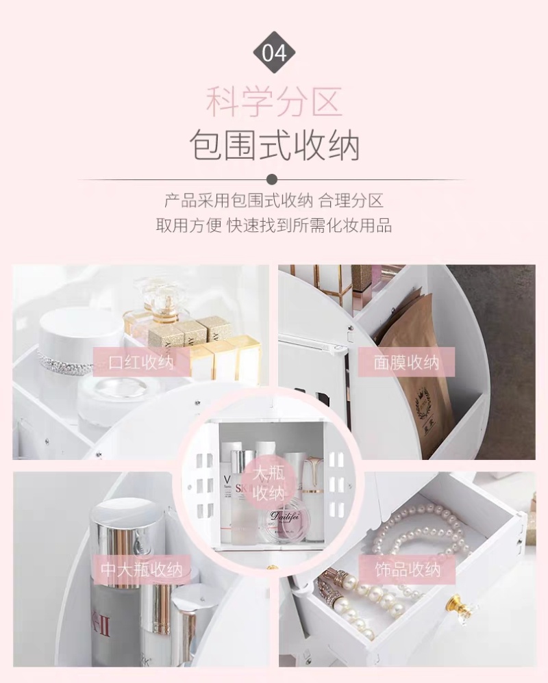 【产品名称】:圆形带镜化妆柜 【产品型号】:ZW2868 【产品尺寸】:36*30*17(不加镜子的尺寸) 【产品材质】:木塑板